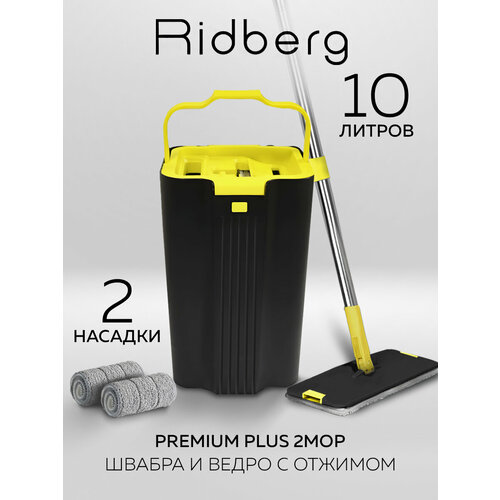 Купить Швабра Ridberg с ведром для отжима Premium Plus (Black/Yellow) / 2 насадки в комплекте с доставкой по всей России.