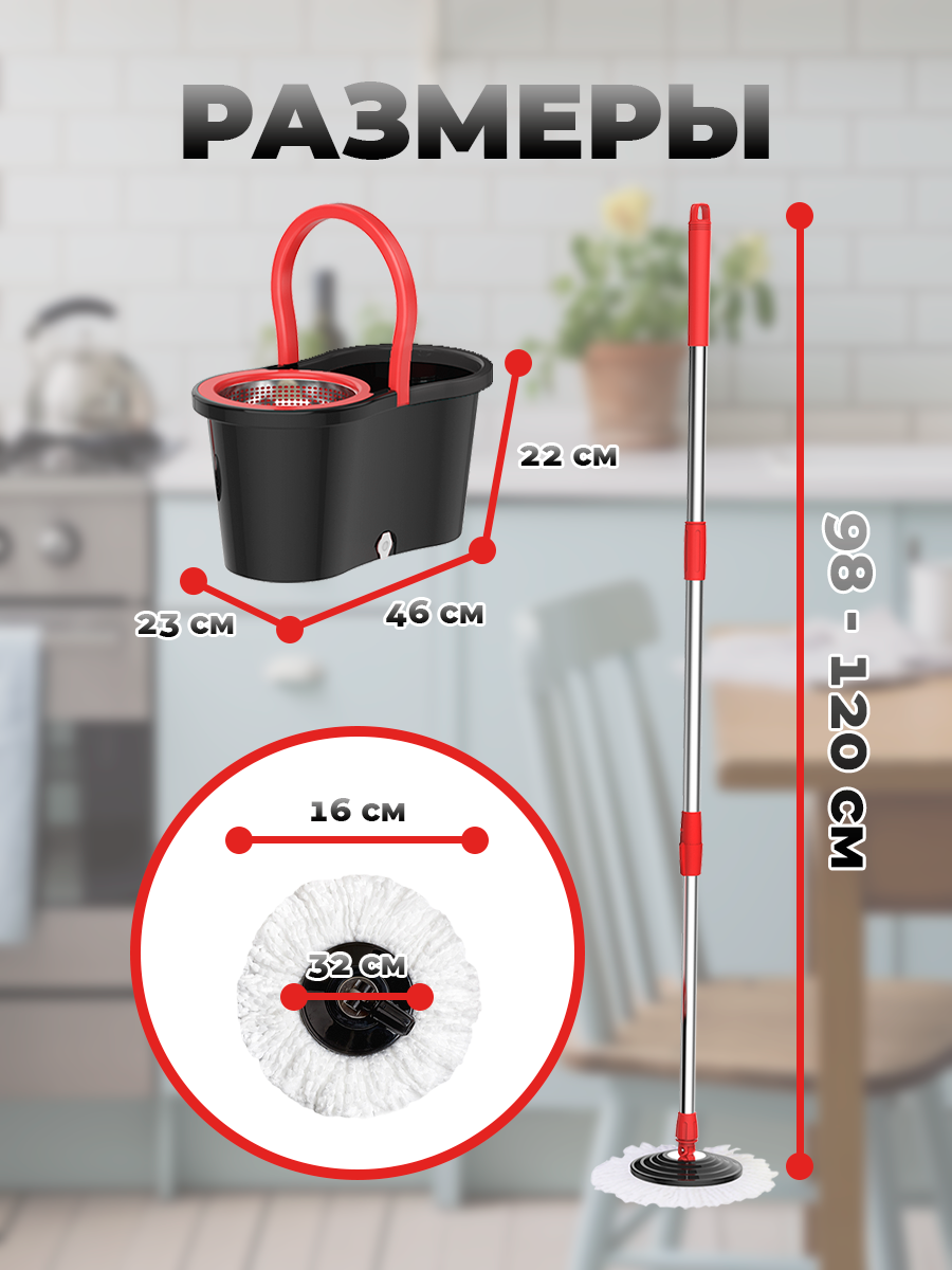 Швабра COSTWAY СOST-S600BK, с отжимом, телескопическая ручка, 120см, чёрная: сравнение цен, характеристики, фото, актуальное наличие и цены.