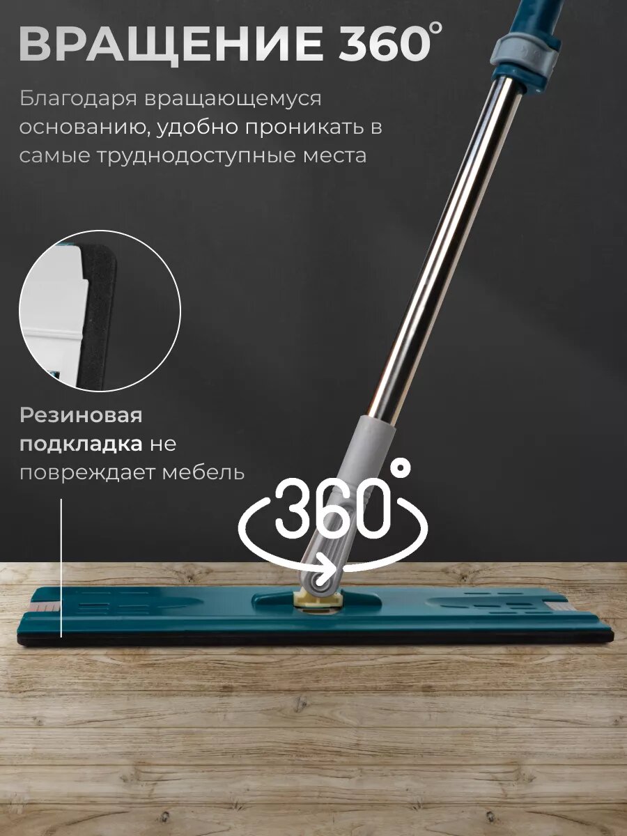 Швабра с отжимом и ведром TOHOMU XЗ, с разделением чистой и грязной воды, 10 литров, длина швабры 126 см