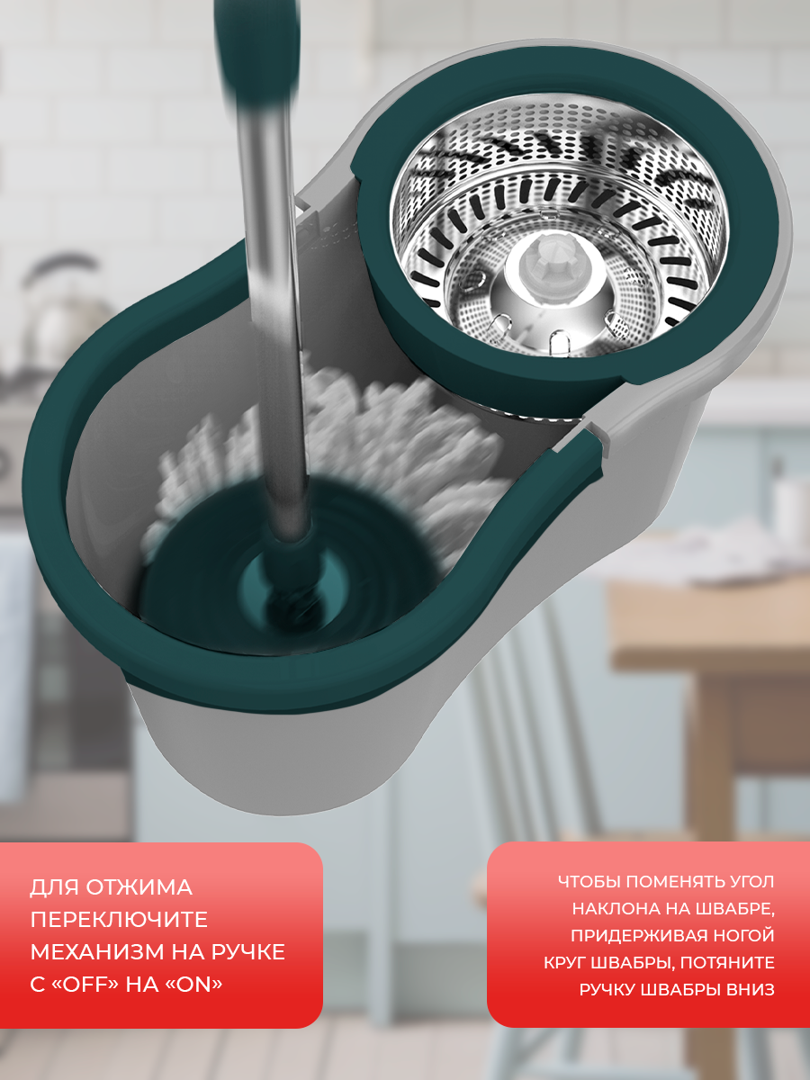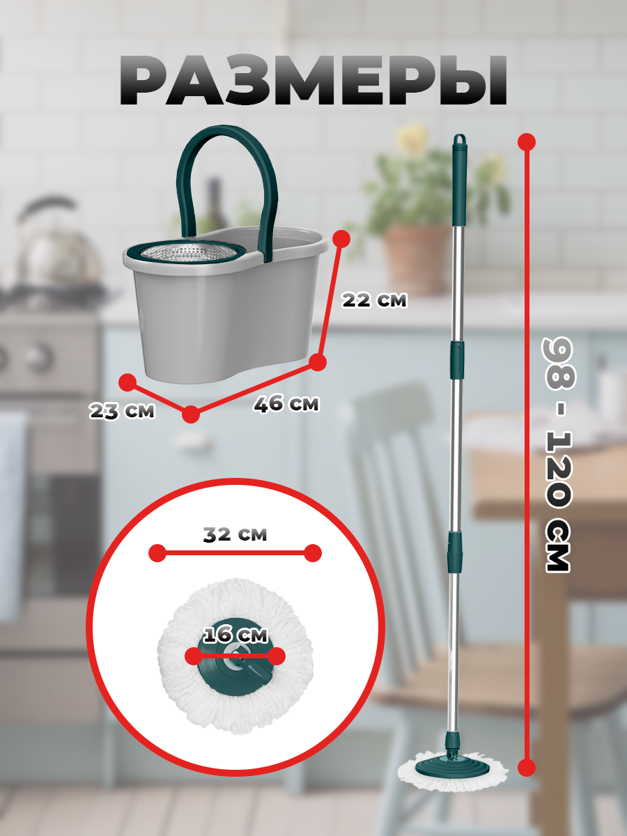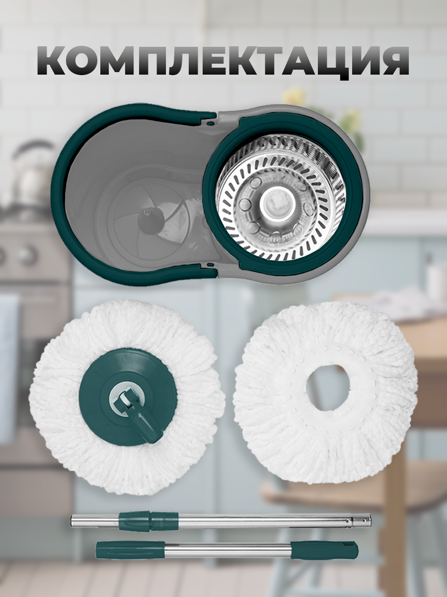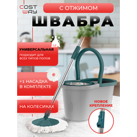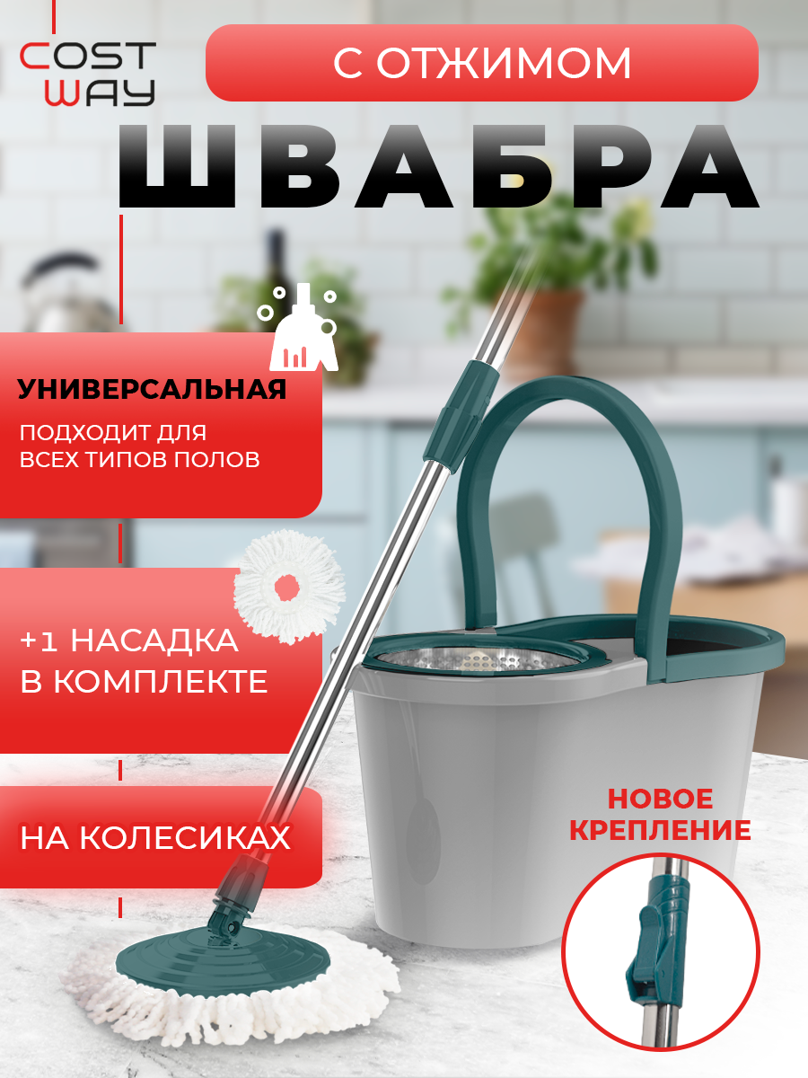Швабра COSTWAY S600GR, с отжимом, с ведром, с насадками, для пола и ванны, микрофибра, 1,5 кг: сравнение цен, характеристики, фото, актуальное наличие и цены.