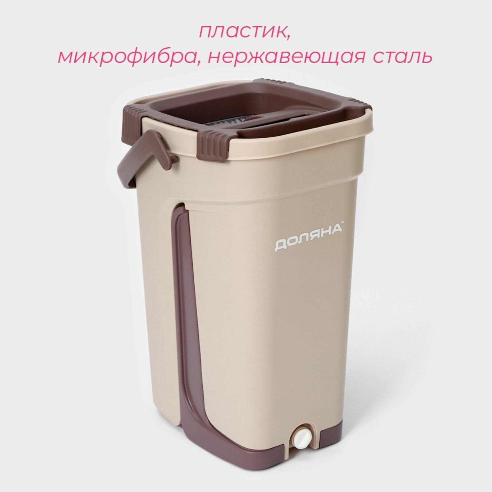 Купить Швабра с отжимом и ведром Доляна, цвет бежевый, длина ручки 120 см с доставкой по всей России.