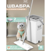 Купить Швабра с отжимом и ведром Suf Home белая 8 литров с 2 насадками, умная швабра с доставкой по всей России.
