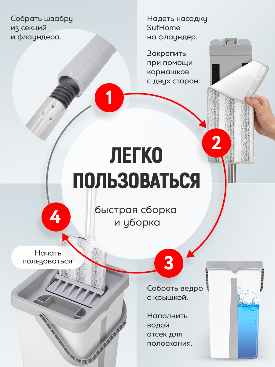Швабра с отжимом и ведром Suf Home белая 8 литров с 2 насадками, умная швабра: сравнение цен, характеристики, фото, актуальное наличие и цены.