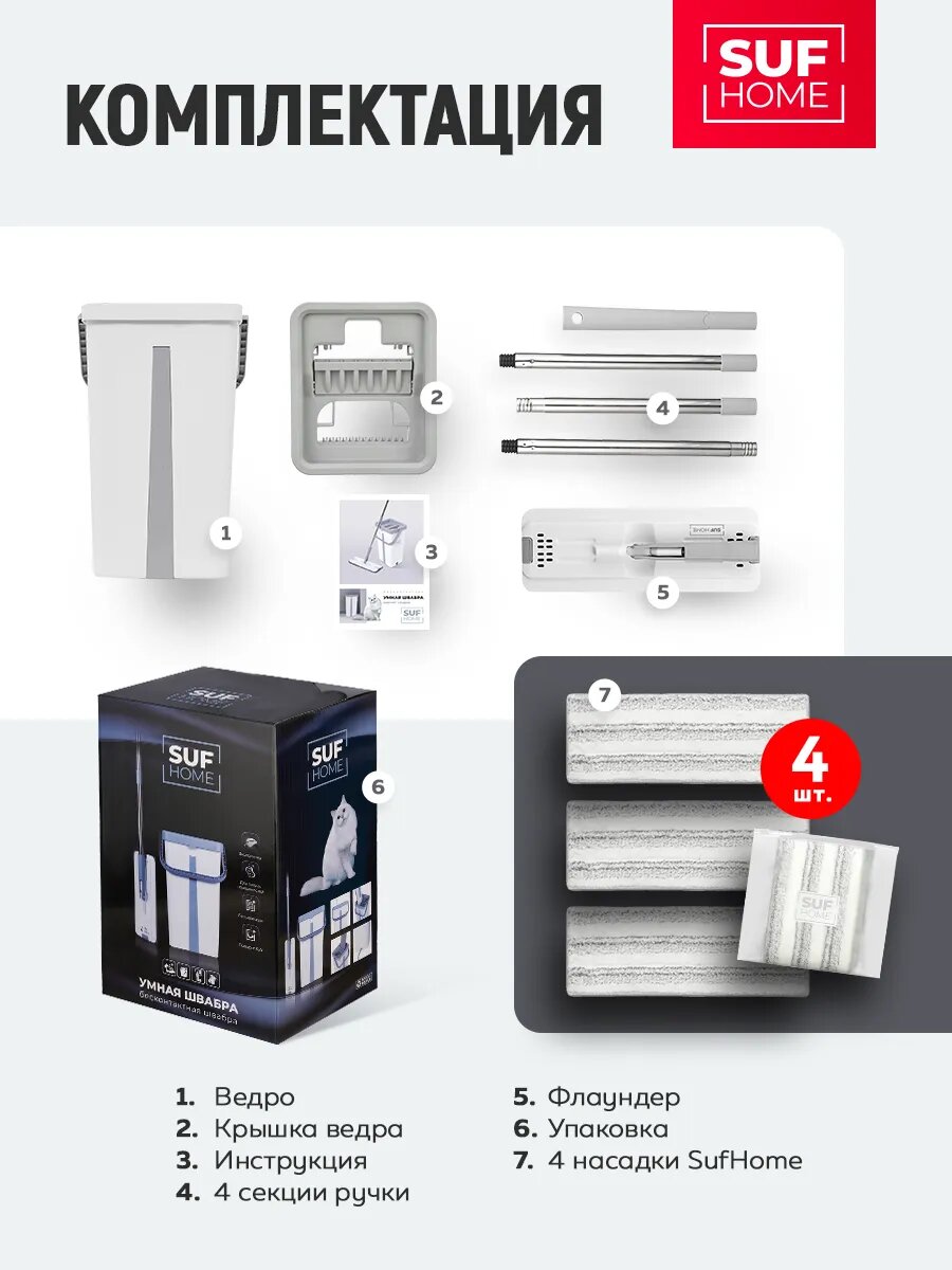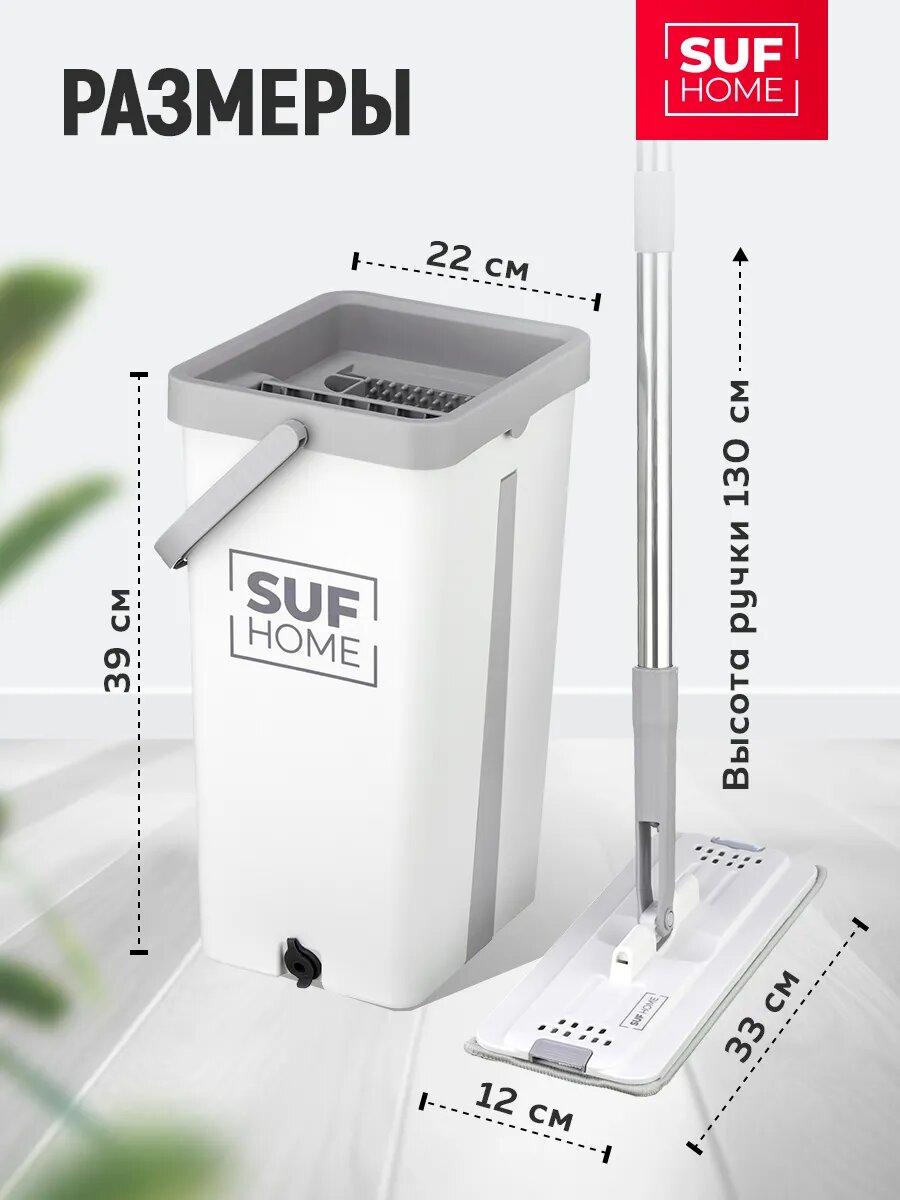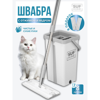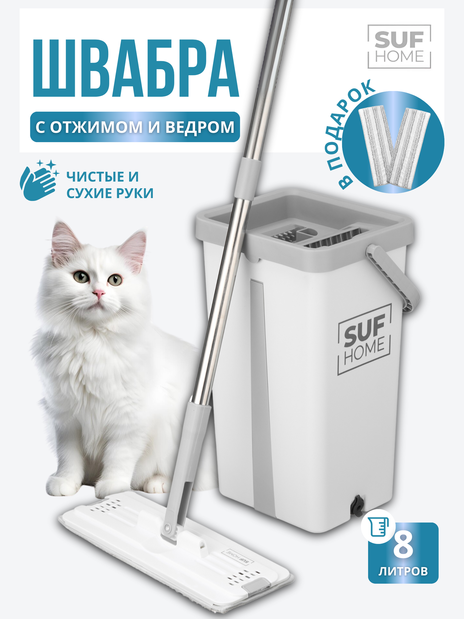 Швабра с отжимом и ведром Suf Home белая 8 литров с 2 насадками, умная швабра: сравнение цен, характеристики, фото, актуальное наличие и цены.