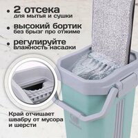 В первом находится читая вода для более тщательного полоскания, а второй отсек предназначен для сушки швабры. Эффективная система уборки подходит для любых твёрдых поверхностей: ламинат, линолеум, плитка, паркет, виниловые и деревянные полы.