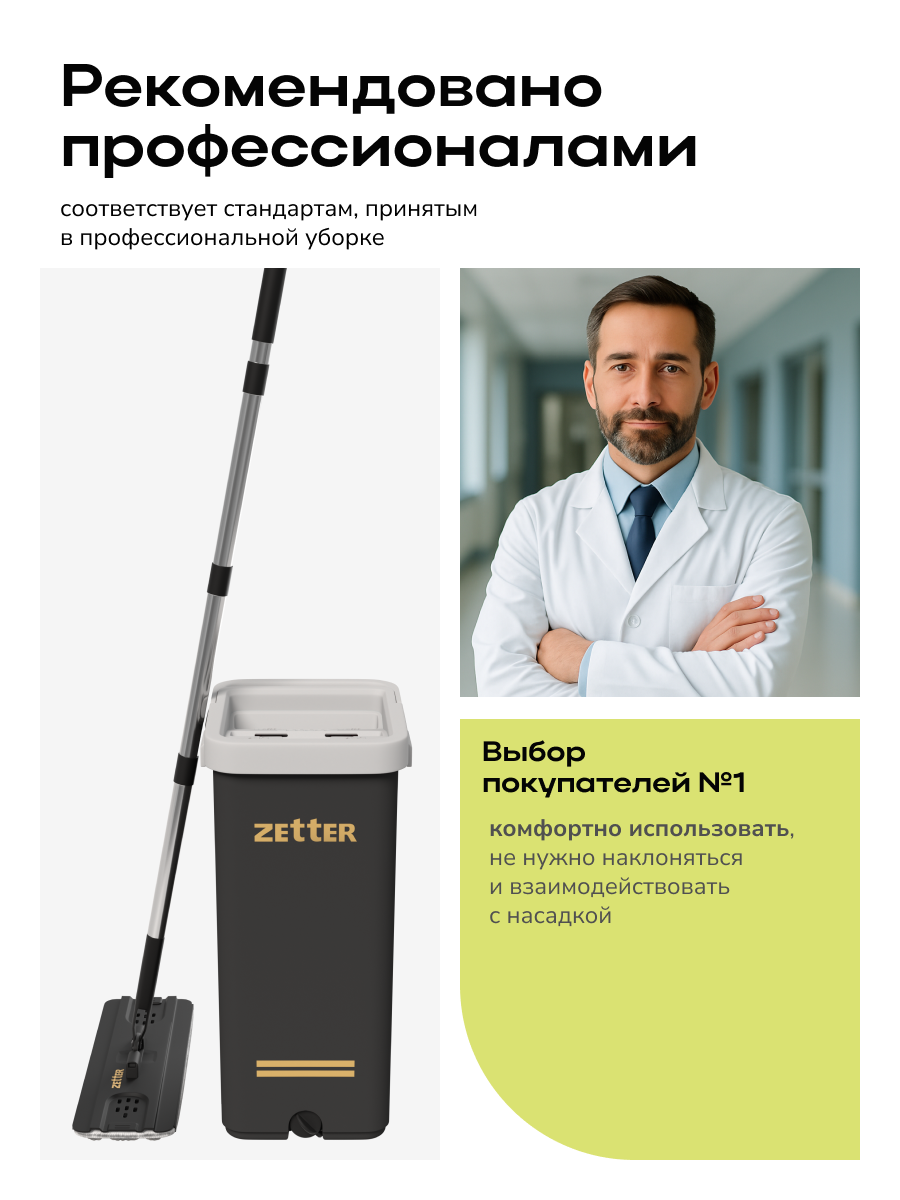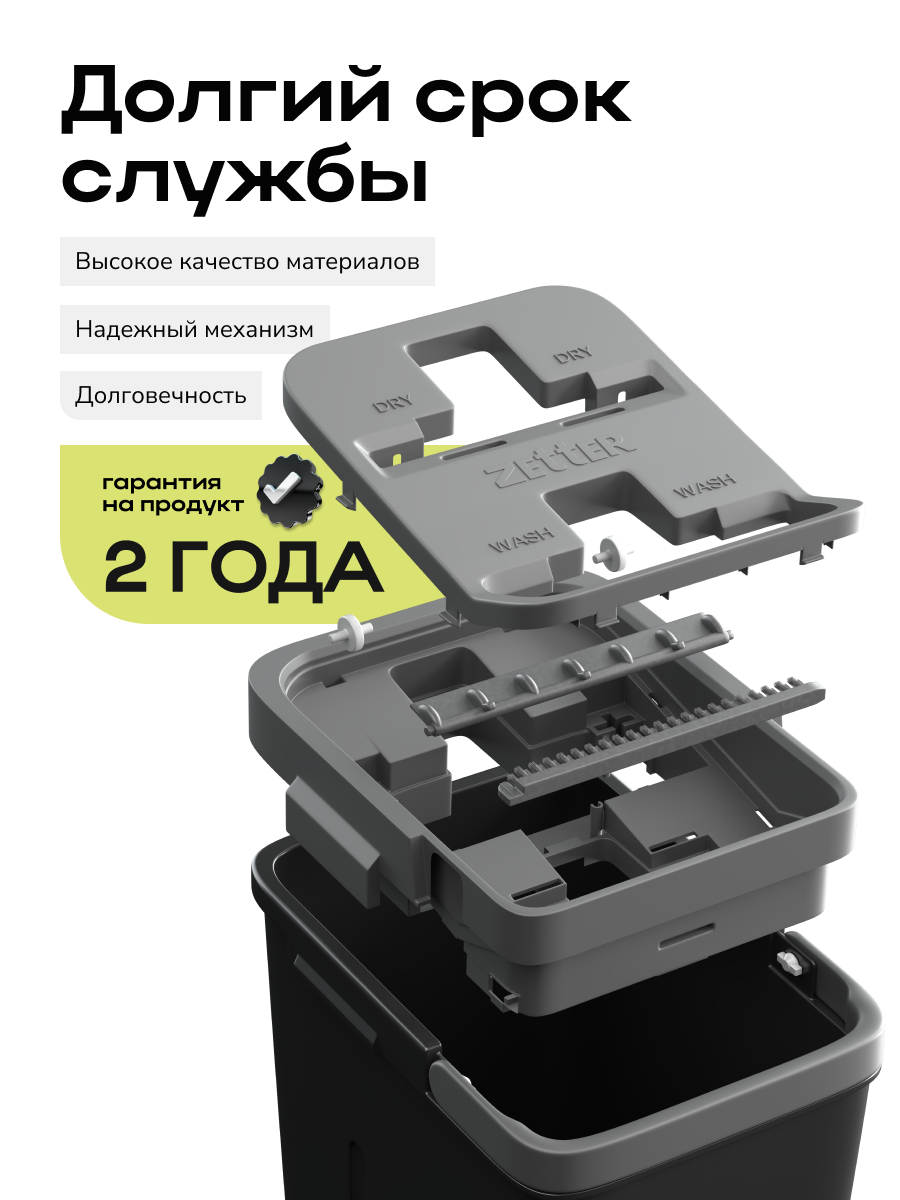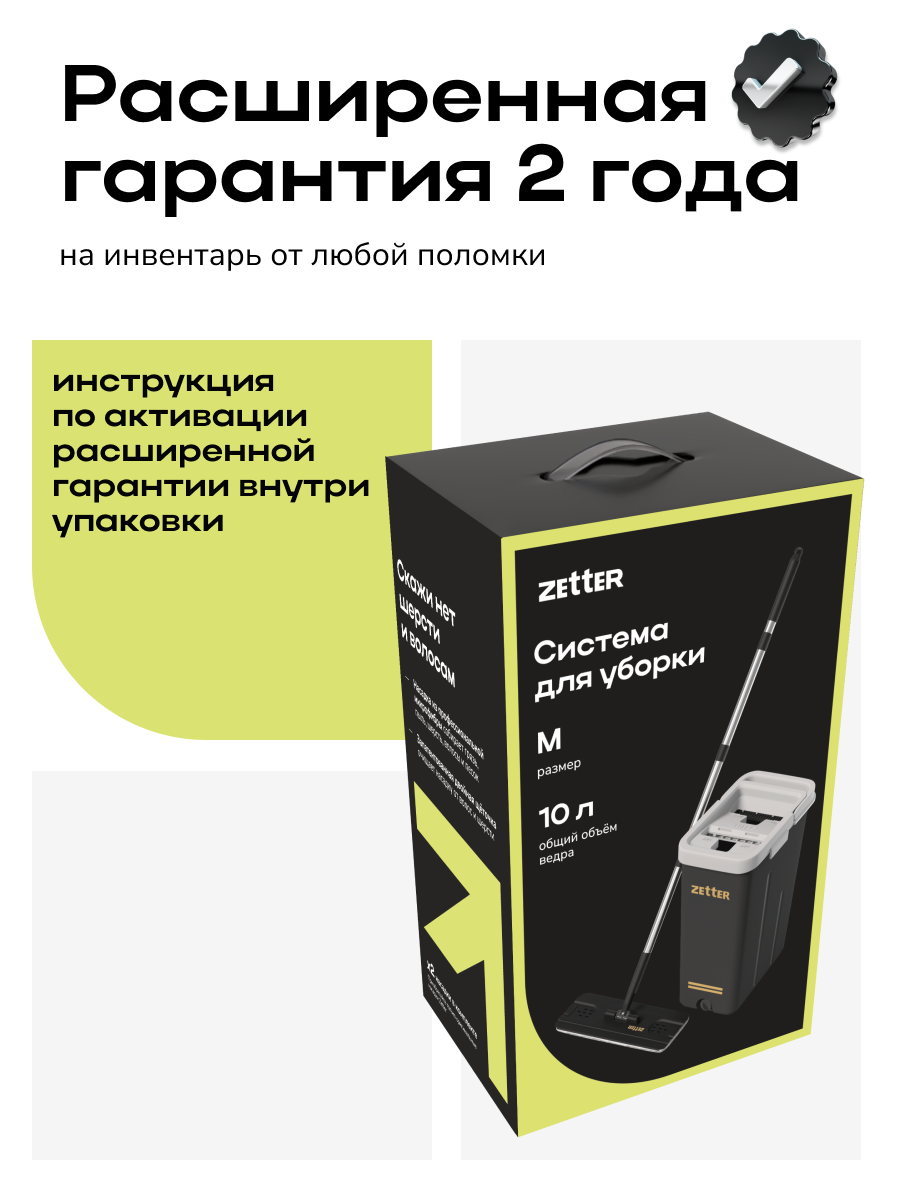 Швабра и ведро с отжимом Zetter M (10 л) – это качественная и удобная система для уборки, которая станет незаменимым помощником в поддержании чистоты вашего дома.