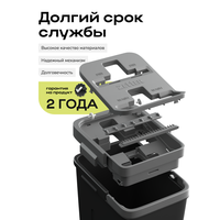 Комплект для уборки дома из швабры с вертикальным отжимом и ведром серого цвета имеет вес 2 кг, объем ведра составляет 10 литров. Ширина насадки – 12 см, длина насадки – 33 см.