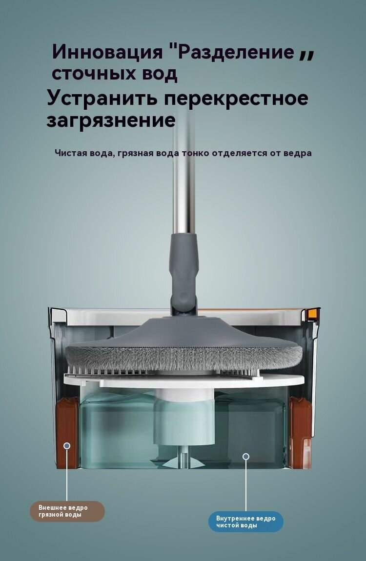 Умная швабра с отжимом и ведром. для мытья полов 10 литров с насадками для швабры 4 шт BIRDS AND FISH