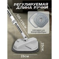 Телескопическая ручка с регулировкой длины — швабра легко настраивается под ваш рост, что позволяет работать с максимальным комфортом и достигать даже самых труднодоступных мест.