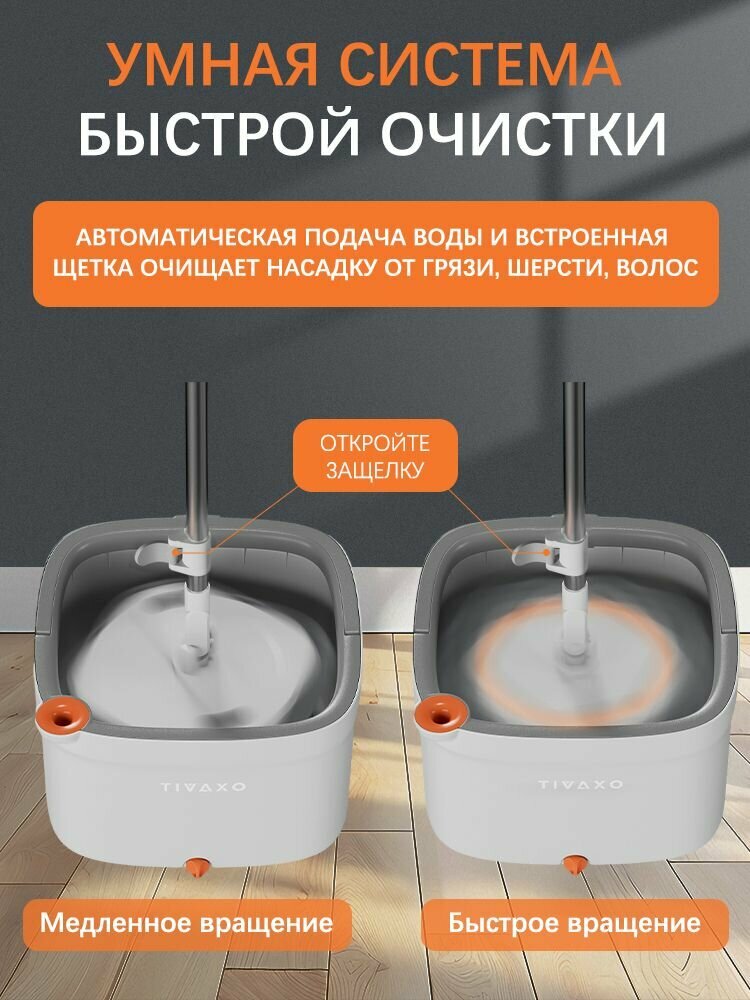 Швабра «TIVAXO», телескопическая, с самоотжимом, ведро центрифуга в комплекте: сравнение цен, характеристики, фото, актуальное наличие и цены.