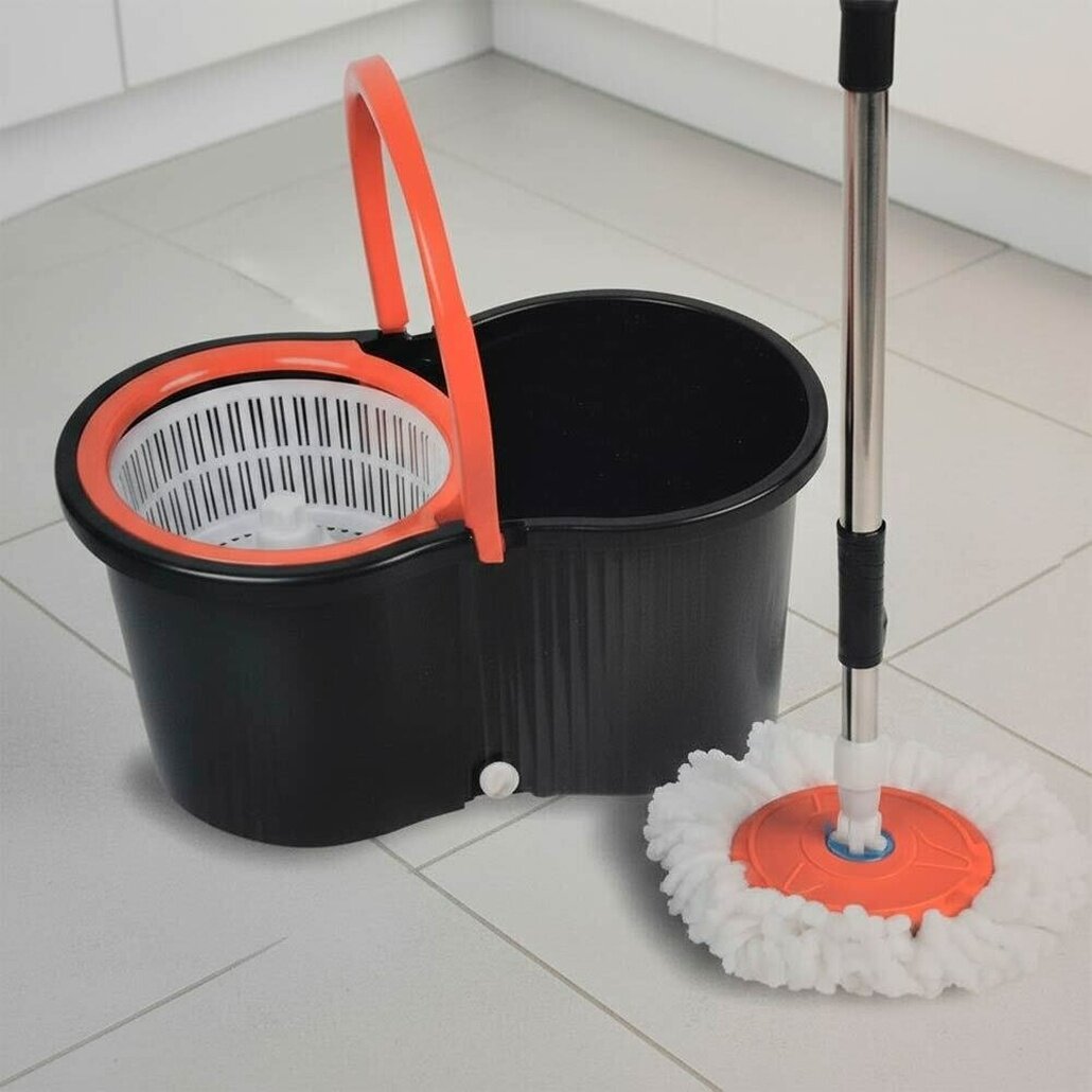 Купить Швабра для полов с ведром 10 л и системой отжима, микрофибра, вращение 360 с доставкой по всей России.