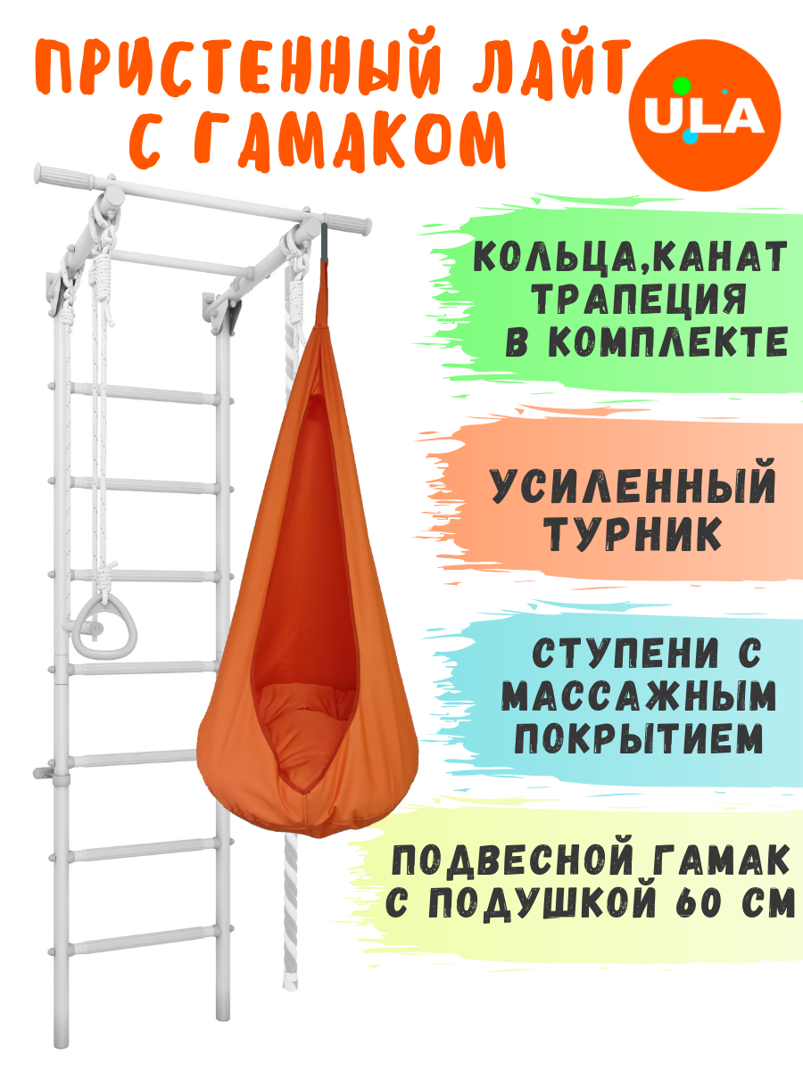 Шведская стенка детская Лайт с гамаком, цвет пастель-оранжевый: сравнение цен, характеристики, фото, актуальное наличие и цены.