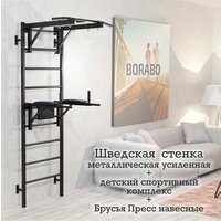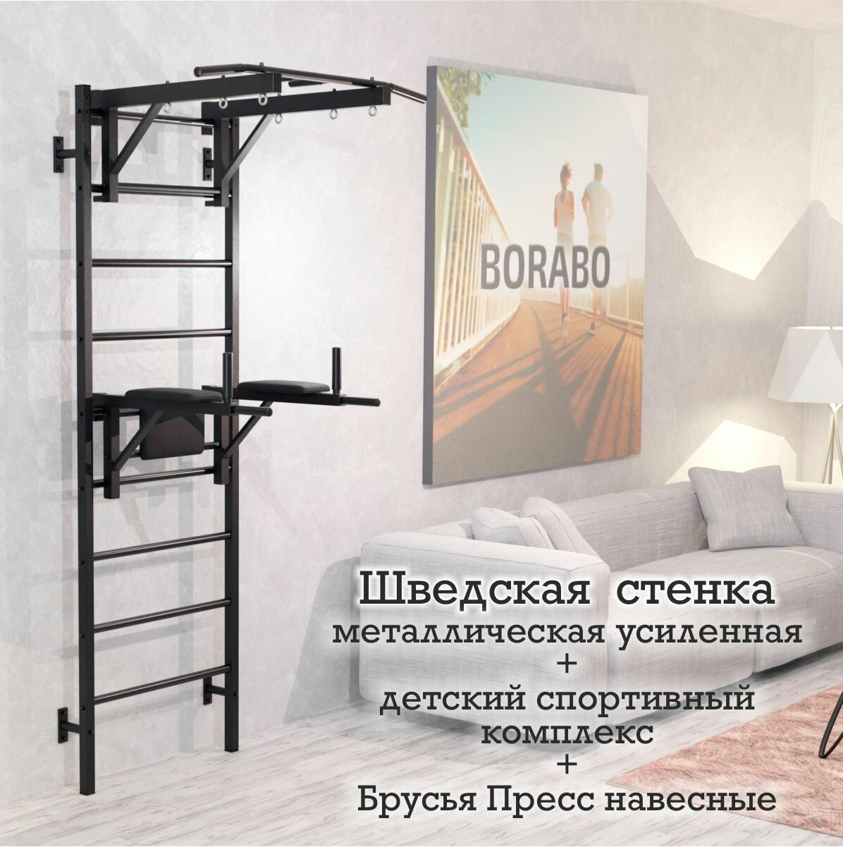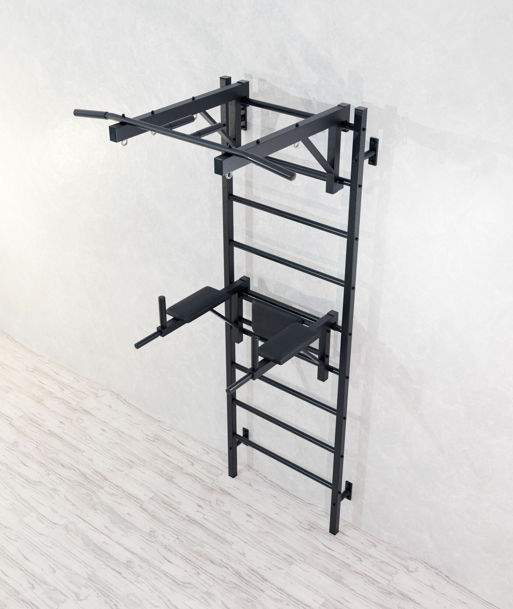 Турник-Брусья-Пресс навесные на шведскую стенку имеют специальную конструкцию со сварным креплением в форме петли из мощного металлического профиля. Благодаря этому они выдерживают огромные нагрузки.