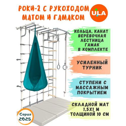 Шведская стенка Роки-2 с рукоходом, гамаком и матом 1,5х1 м, цвет пастель-бирюзовый: сравнение цен, характеристики, фото, актуальное наличие и цены.