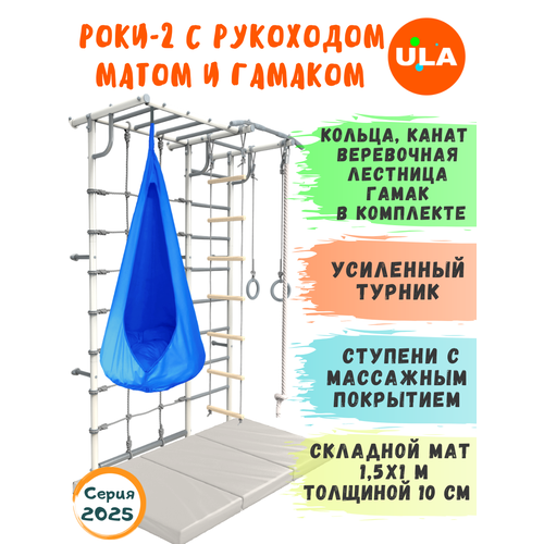 Шведская стенка Роки-2 с рукоходом, гамаком и матом 1,5х1 м, цвет пастель-голубой: сравнение цен, характеристики, фото, актуальное наличие и цены.