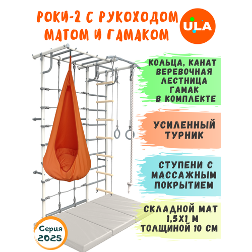 Шведская стенка Роки-2 с рукоходом, гамаком и матом 1,5х1 м, цвет пастель-оранжевый: сравнение цен, характеристики, фото, актуальное наличие и цены.