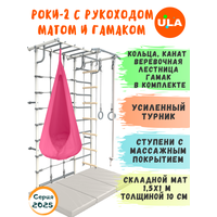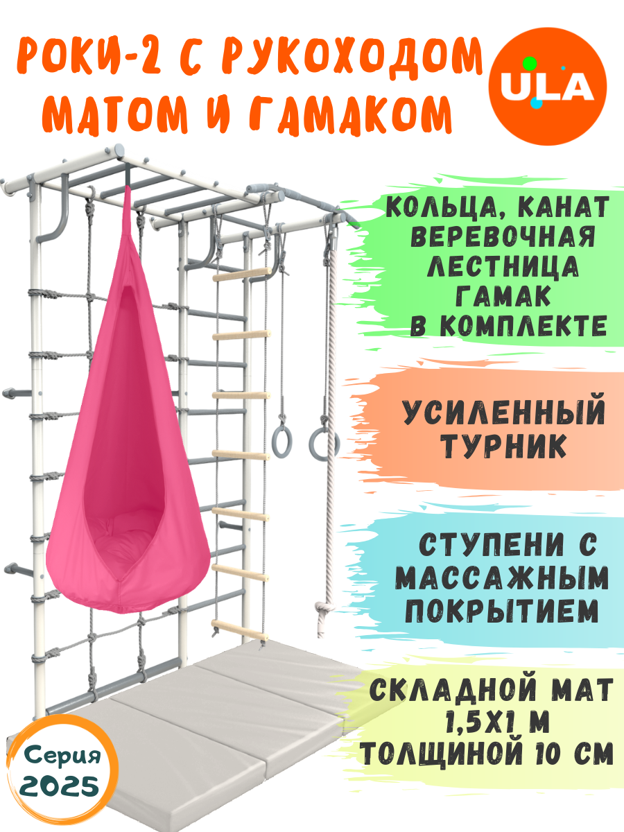Шведская стенка Роки-2 с рукоходом, гамаком и матом 1,5х1 м, цвет пастель-розовый: сравнение цен, характеристики, фото, актуальное наличие и цены.