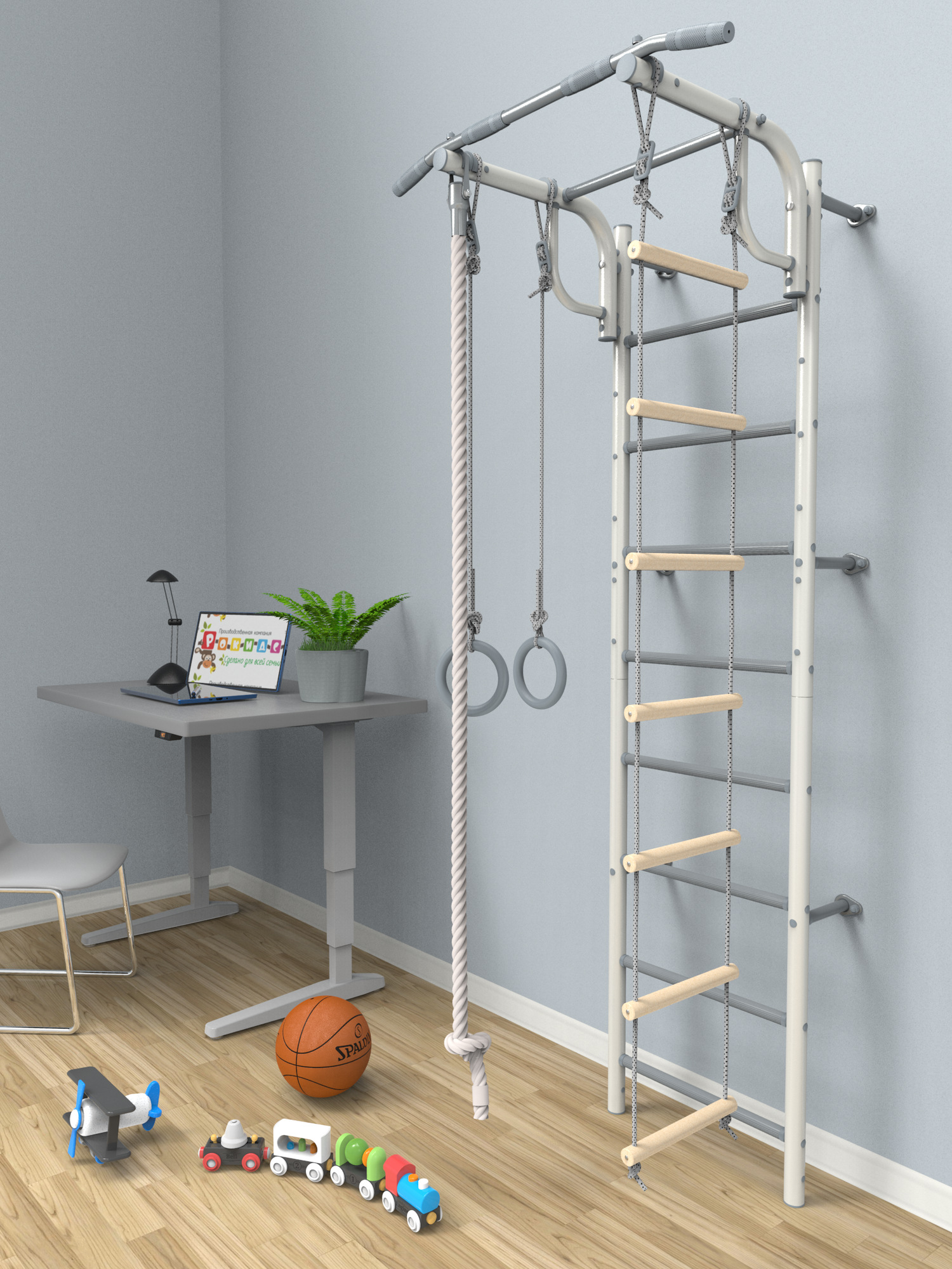Купить Шведская стенка с подвижным турником (кольца гимнастические, канат, лестница веревочная) бело-серый с доставкой по всей России. Шведская стенка с подвижным турником (кольца гимнастические, канат, лестница веревочная) бело-серый: сравнение цен, характеристики, фото, актуальное наличие и цены.