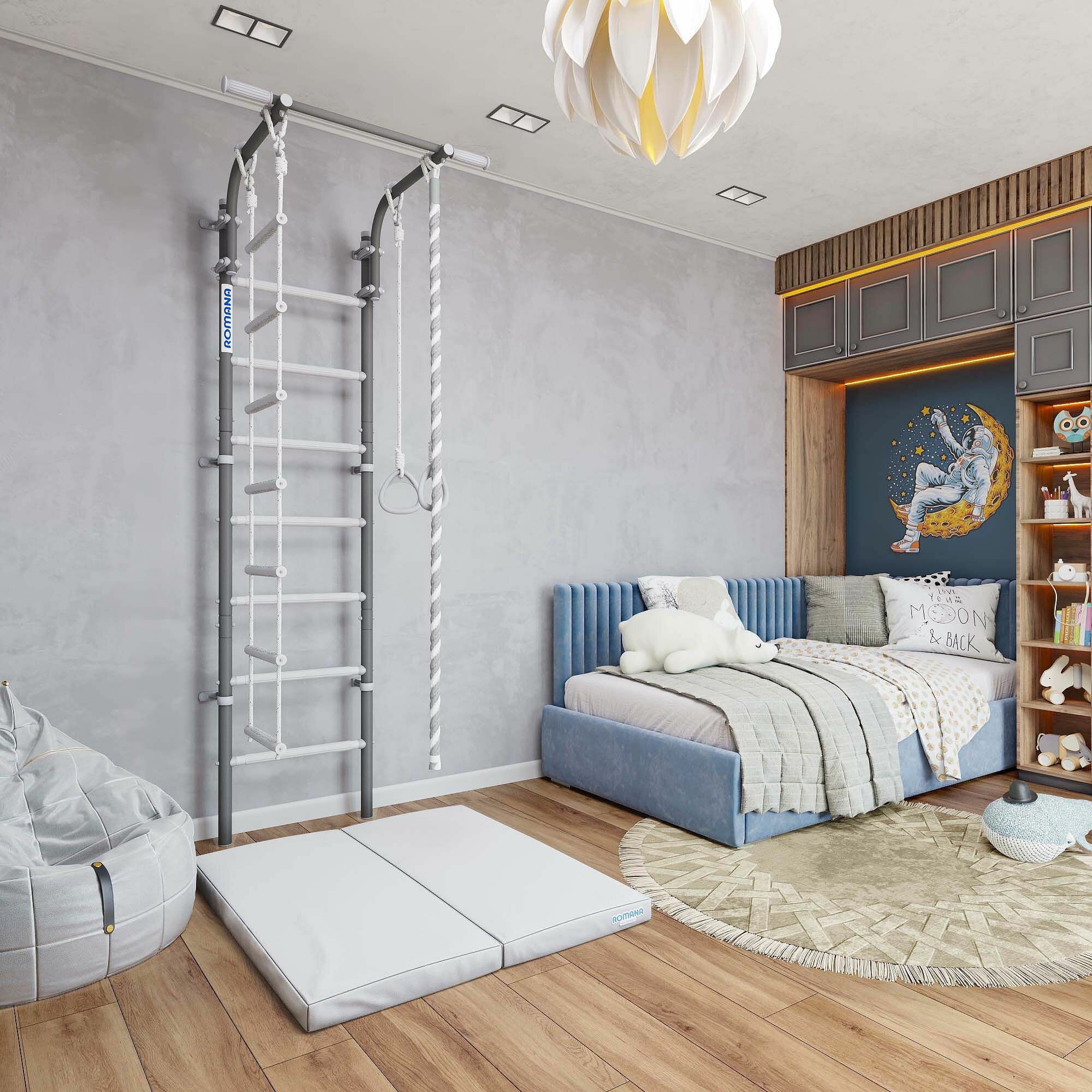 Шведская стенка ROMANA Next Lite + детская для дома в комплекте: канат спортивный, кольца гимнастические, лестница веревочная: сравнение цен, характеристики, фото, актуальное наличие и цены.
