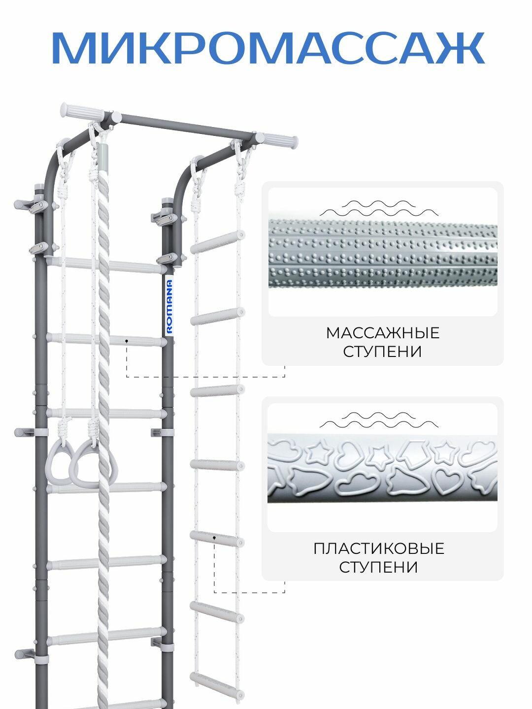 Купить Шведская стенка ROMANA Next Lite + детская для дома в комплекте: канат спортивный, кольца гимнастические, лестница веревочная с доставкой по всей России.
