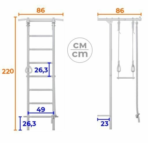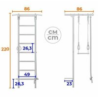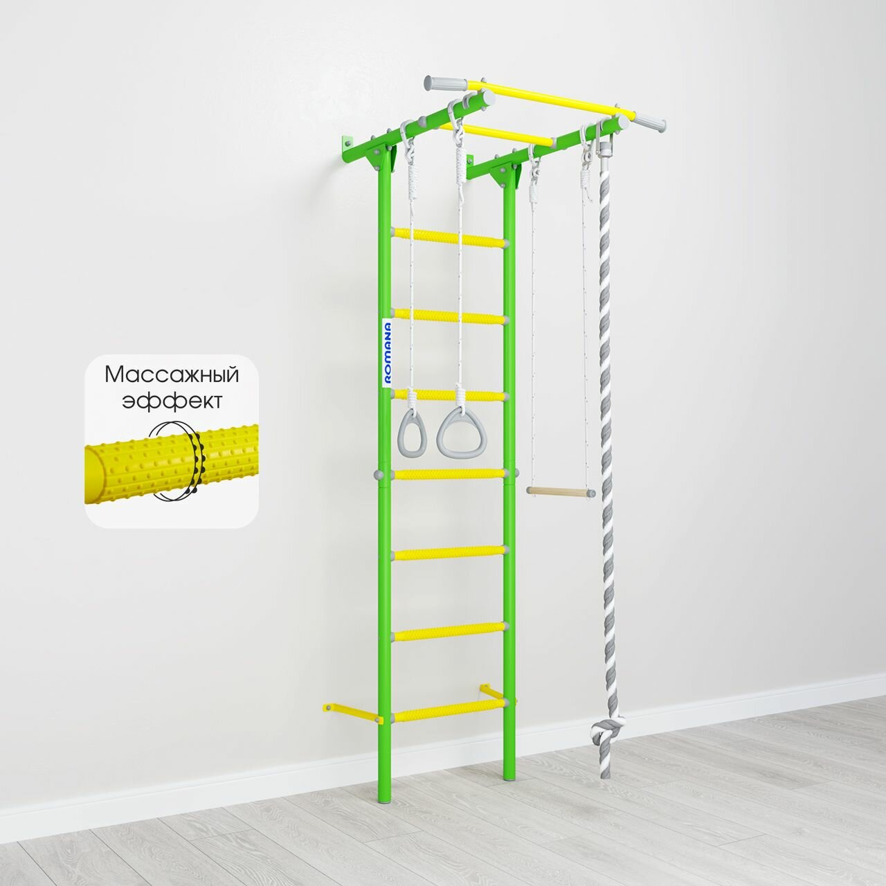 | Комплектация комплекса | веревочная лестница, гимнастические кольца, канат, скалолазная стенка, турник |