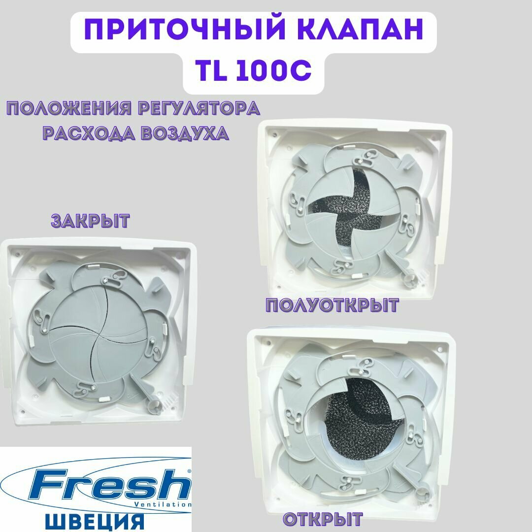 Шведский приточный клапан с регулятором расхода воздуха и фильтром, FRESH TL100C: сравнение цен, характеристики, фото, актуальное наличие и цены.