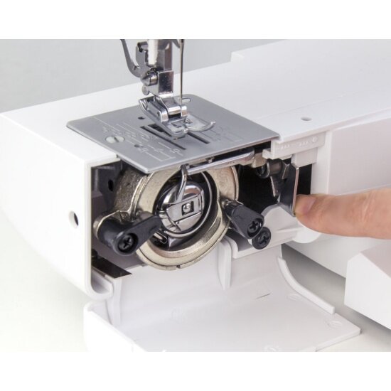 | Особенности | двойная игла, мягкий чехол, работа с грубыми тканями, работа с тонкими тканями, система измерения размера пуговиц, швейный советник, шитье в нескольких направлениях |