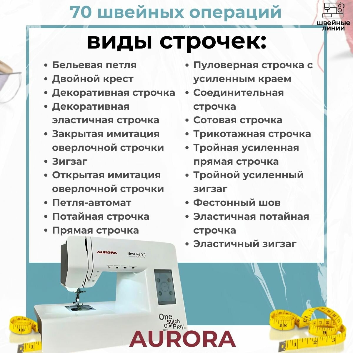 Купить Швейная машина Aurora style 500/ для всех тканей / компьютерная / 70 операций / петля автомат / шитье без педали с доставкой по всей России. Швейная машина Aurora style 500/ для всех тканей / компьютерная / 70 операций / петля автомат / шитье без педали: сравнение цен, характеристики, фото, актуальное наличие и цены.