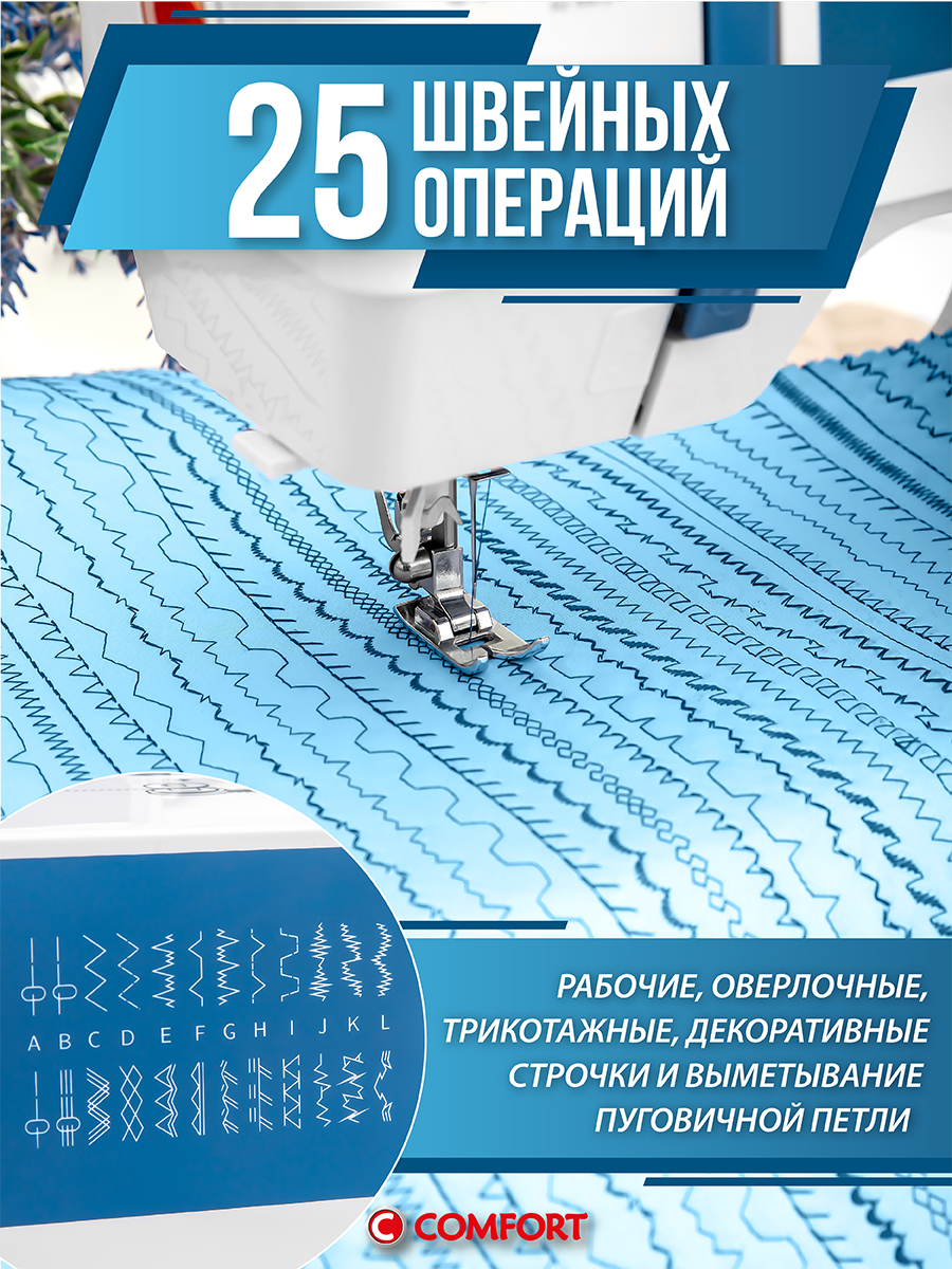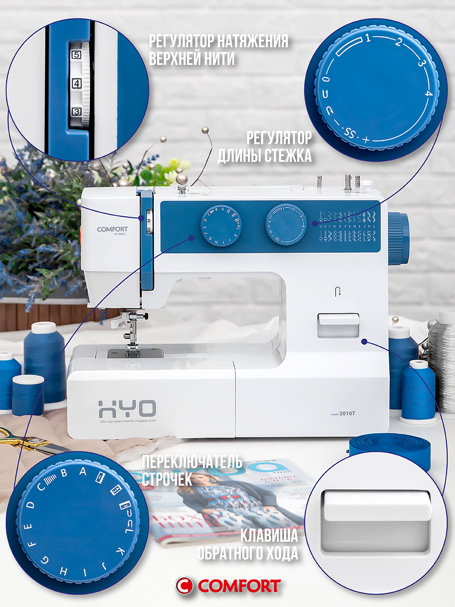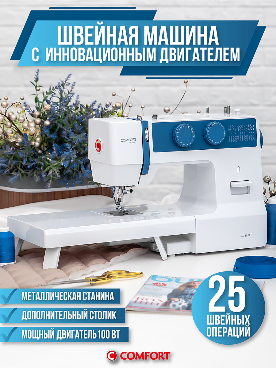 Швейная машина Comfort 2010T, 24 операции, петля полуавтомат, нитевдеватель, доп. столик: сравнение цен, характеристики, фото, актуальное наличие и цены.