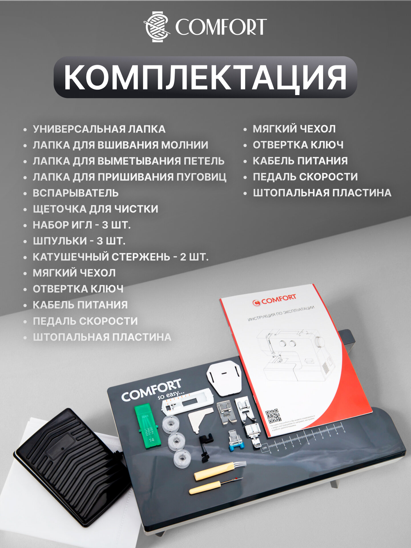 Швейная машина Comfort 2030T, 24 операции, петля полуавтомат, нитевдеватель, доп. столик: сравнение цен, характеристики, фото, актуальное наличие и цены.