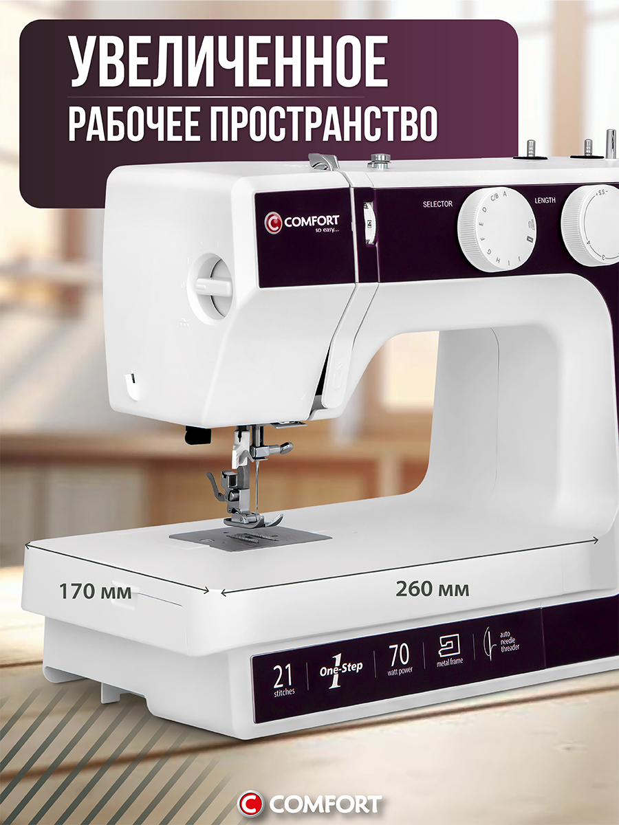 | Подробная комплектация | Инструкция, распарыватель, набор игл(3шт.) , шпульки (3 шт.), лапка для вшивания молнии , пластина для потайной подгибки , рамка для петли полуавтомат , масленка , мягкий чехол , отвертка (2шт.),педаль. |