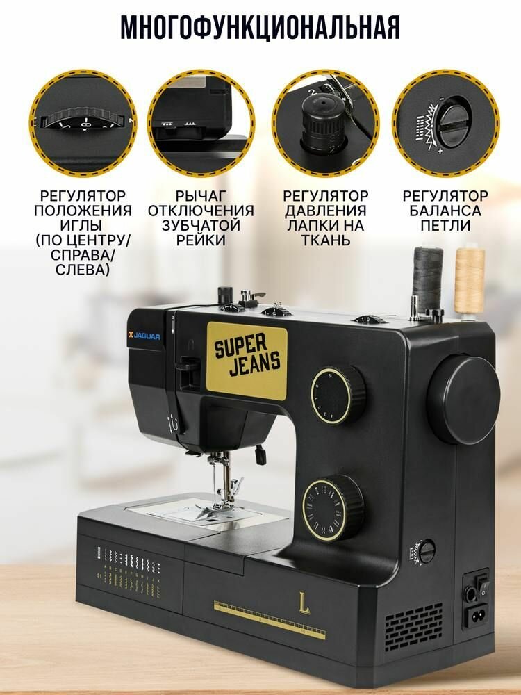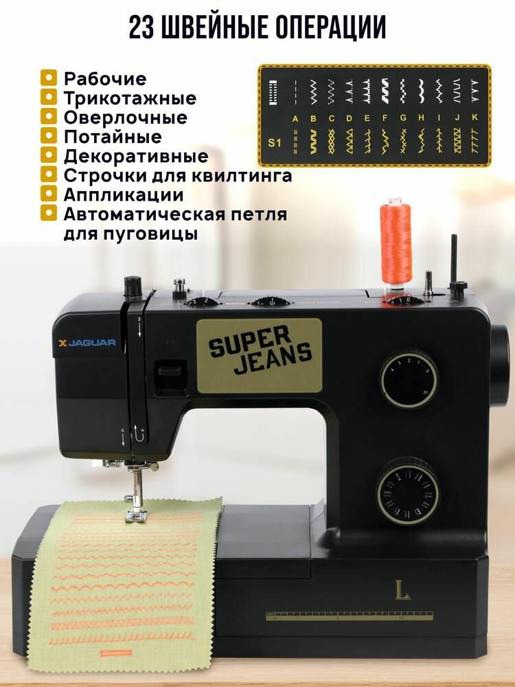 Купить Швейная машина Jaguar Super Jeans L, 100 Вт, 23 швейные операции с доставкой по всей России. Швейная машина Jaguar Super Jeans L, 100 Вт, 23 швейные операции: сравнение цен, характеристики, фото, актуальное наличие и цены.