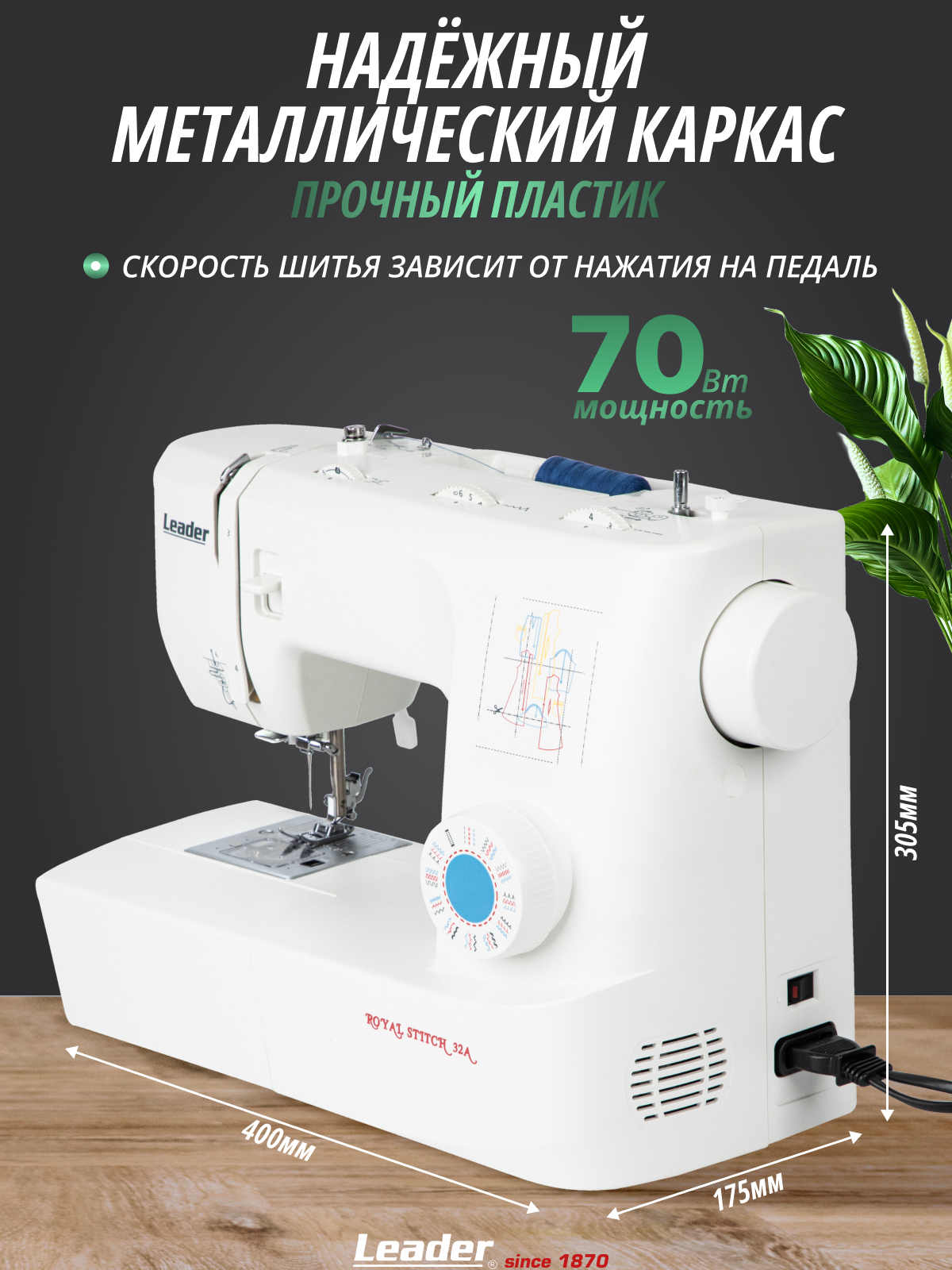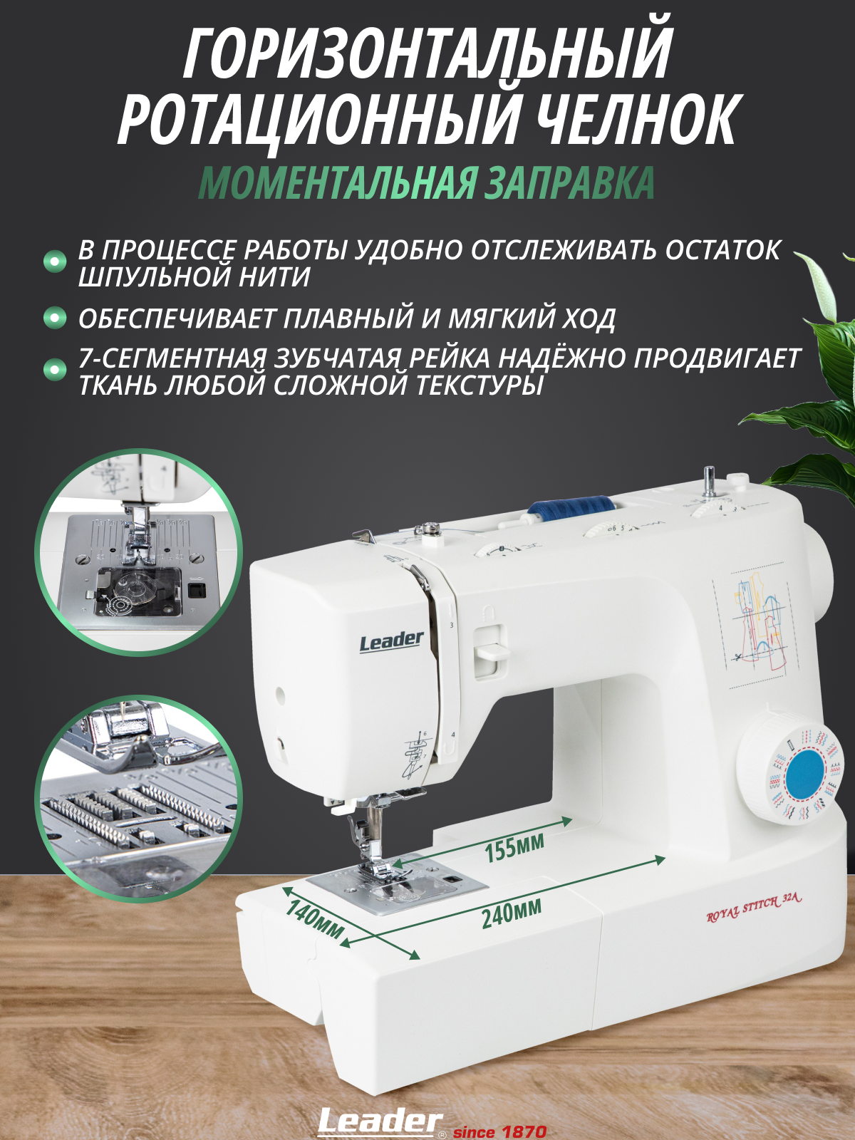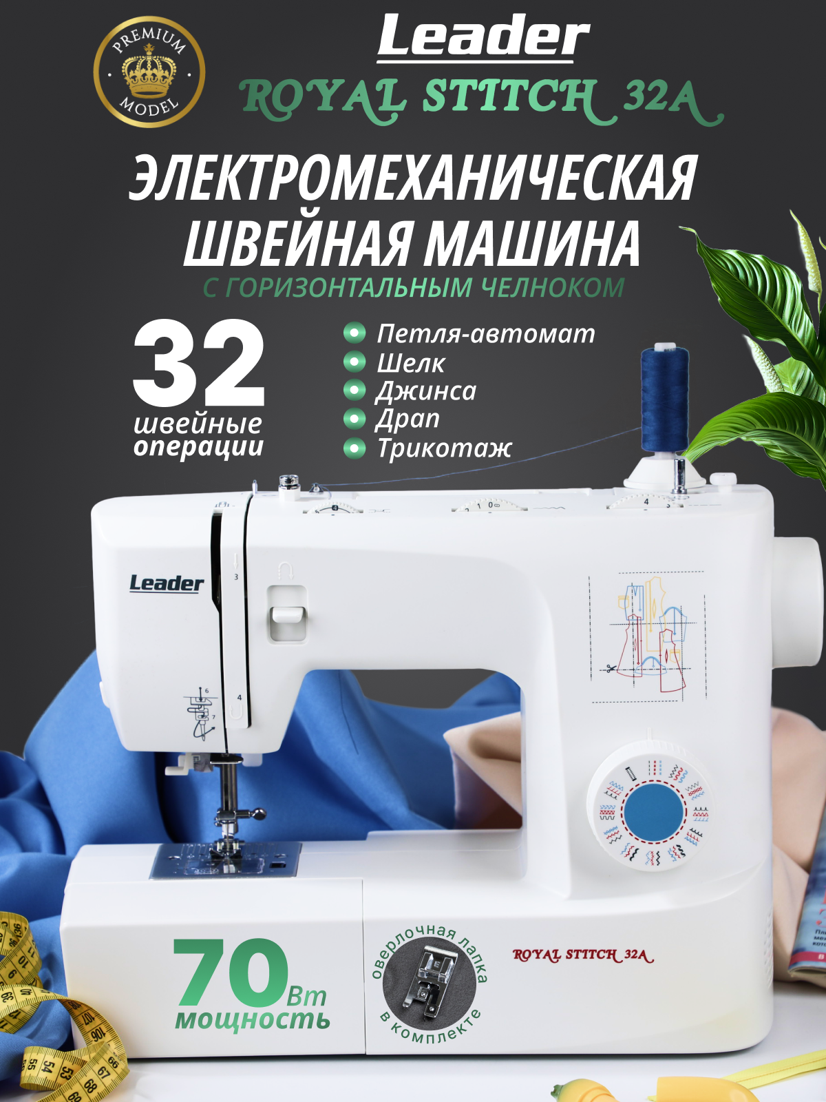 Швейная машина Leader Royal Stitch 32A, электромеханическая с горизонтальным ротационным челноком: сравнение цен, характеристики, фото, актуальное наличие и цены.