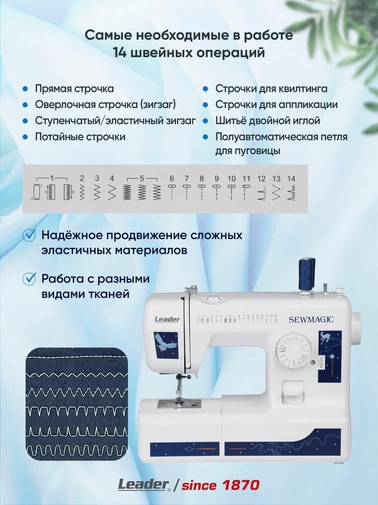 Швейная машина Leader SewMagic, электромеханическая, горизонтальный челнок: сравнение цен, характеристики, фото, актуальное наличие и цены.