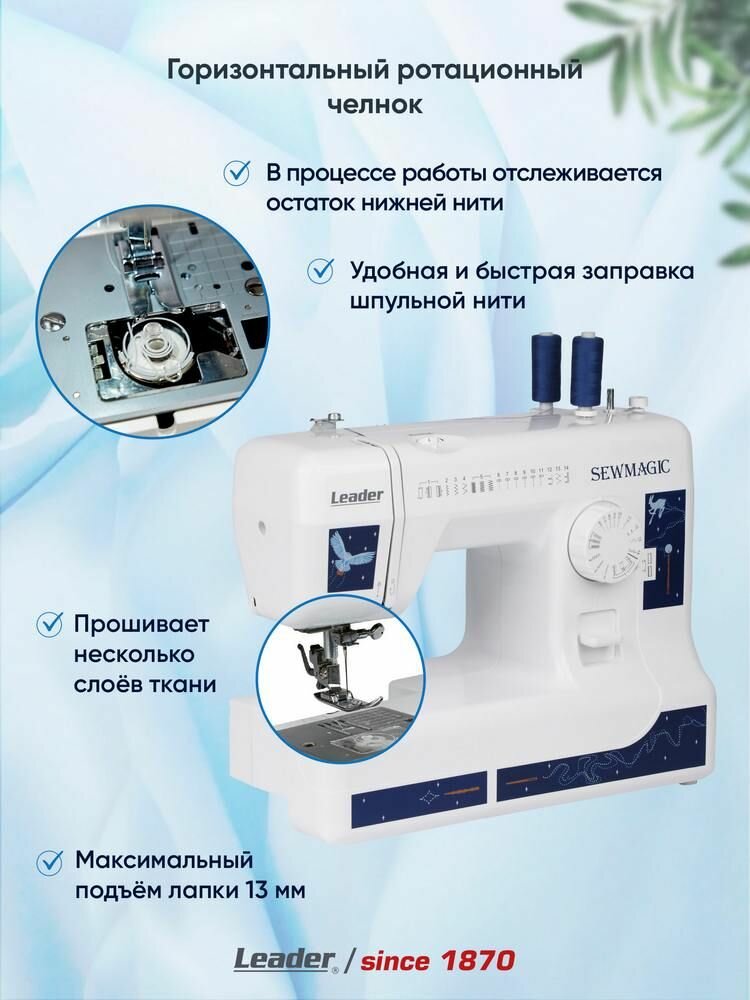 Купить Швейная машина Leader SewMagic, электромеханическая, горизонтальный челнок с доставкой по всей России.