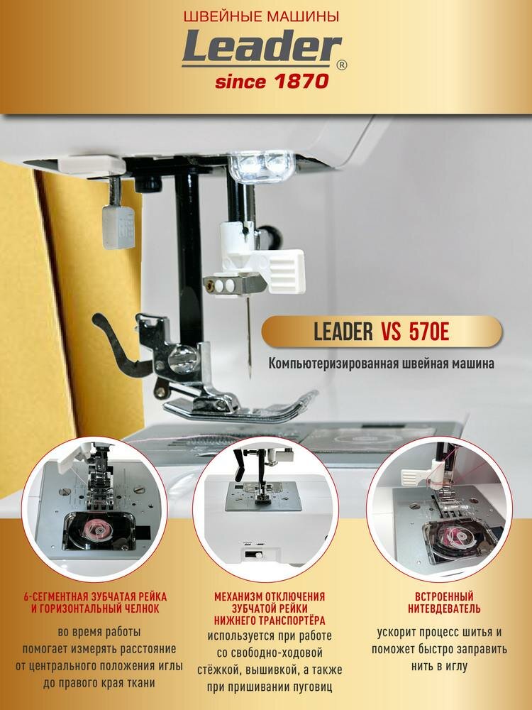 Купить Швейная Машина Leader VS570E, компьютерная с горизонтальным челноком с доставкой по всей России. Швейная Машина Leader VS570E, компьютерная с горизонтальным челноком: сравнение цен, характеристики, фото, актуальное наличие и цены.