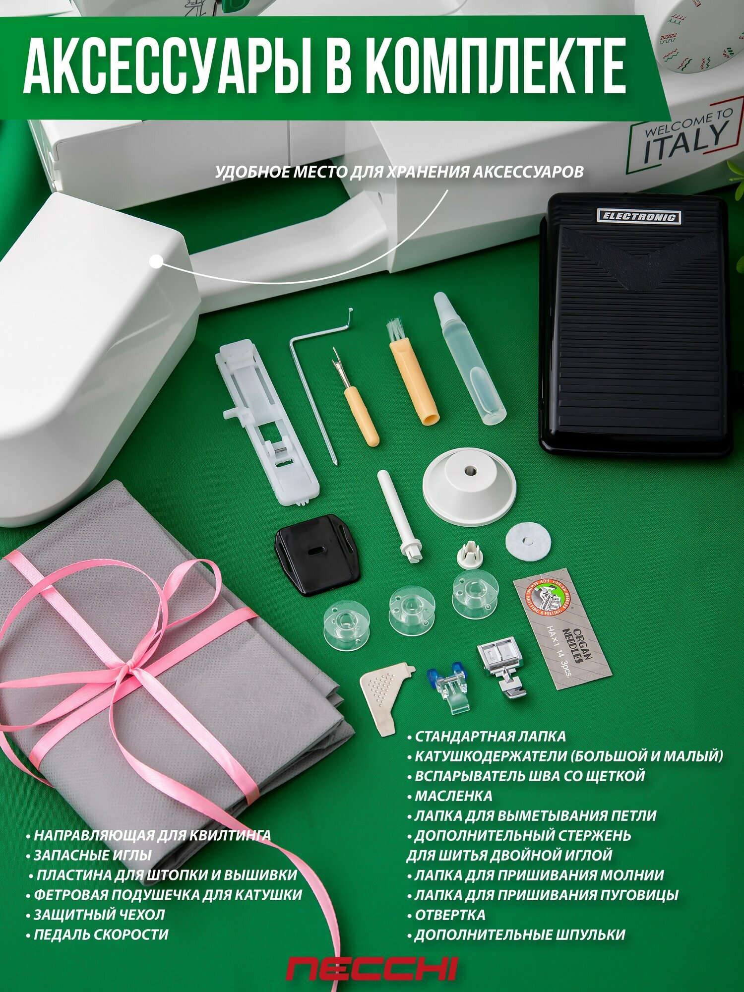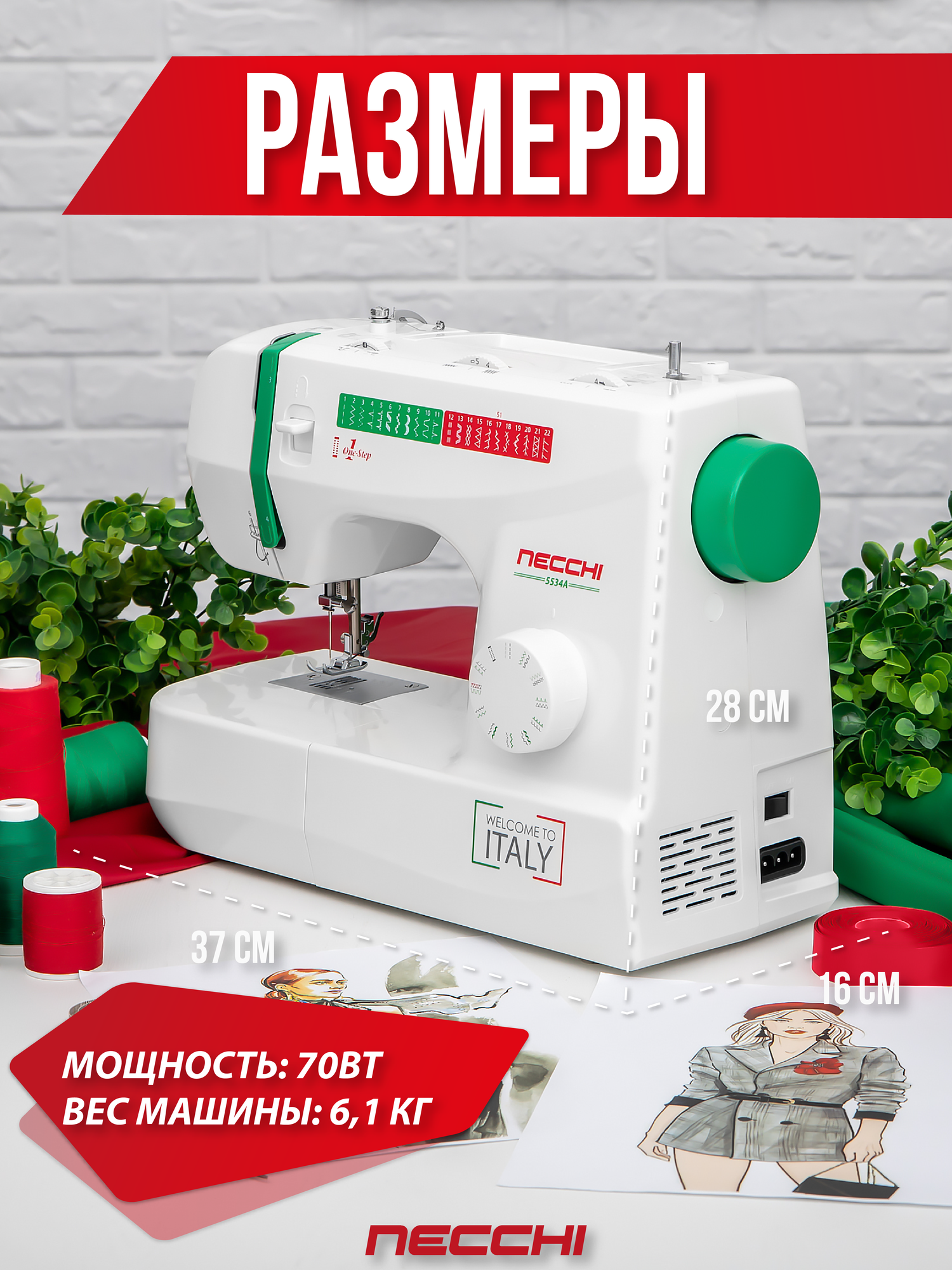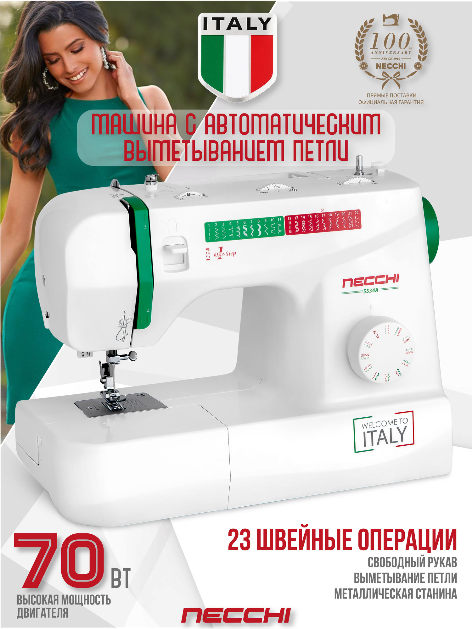 Швейная машина Necchi 5534A, 23 операции, петля автомат, вертикальный челнок: сравнение цен, характеристики, фото, актуальное наличие и цены.