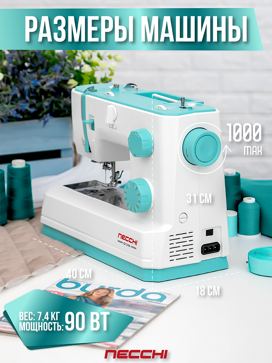 Швейная машина NECCHI Q134A, 34 операции, петля автомат, дополнительный столик, нитевдеватель: сравнение цен, характеристики, фото, актуальное наличие и цены.