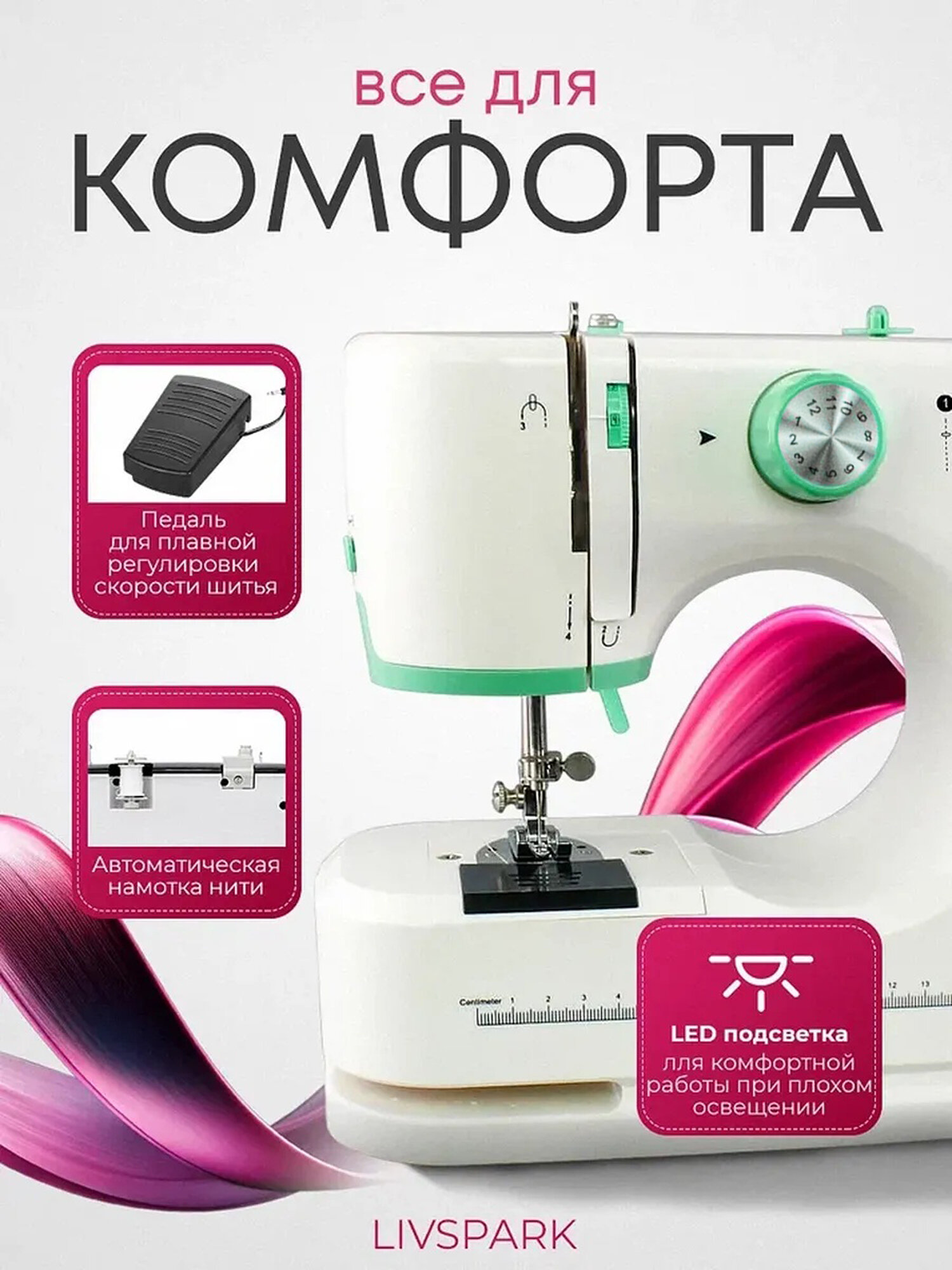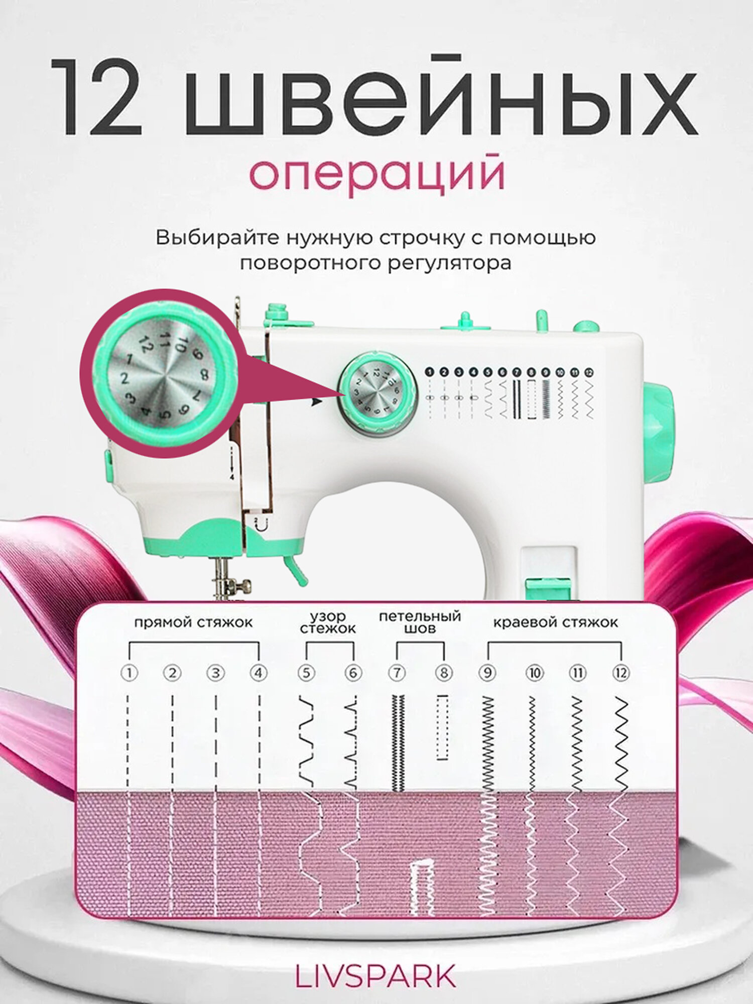 Швейная машина, пластик, ротационный челнок, 12 строчек, белая с зелёным: сравнение цен, характеристики, фото, актуальное наличие и цены.
