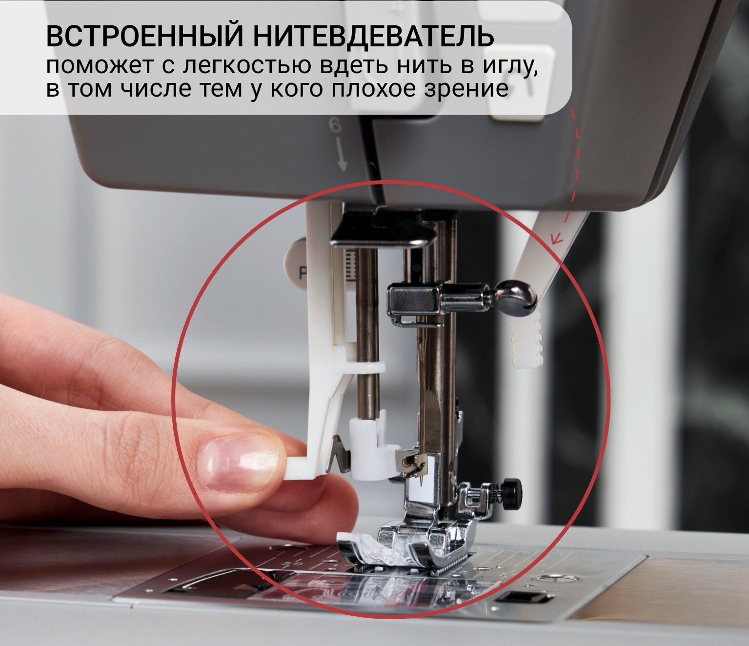 двойная игла, мягкий чехол, ограничитель скорости, работа с грубыми тканями, работа с тонкими тканями