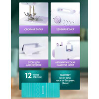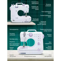 | Дополнительная информация | работа от сетевого адаптера/4-х батареек типа АА (не входят в комплект); 2 скорости работы; автоматическая намотка нити; LED подсветка рабочей области; регулировки натяжения верхней нити; нож для обрезки нити; удобная ручка для переноски |