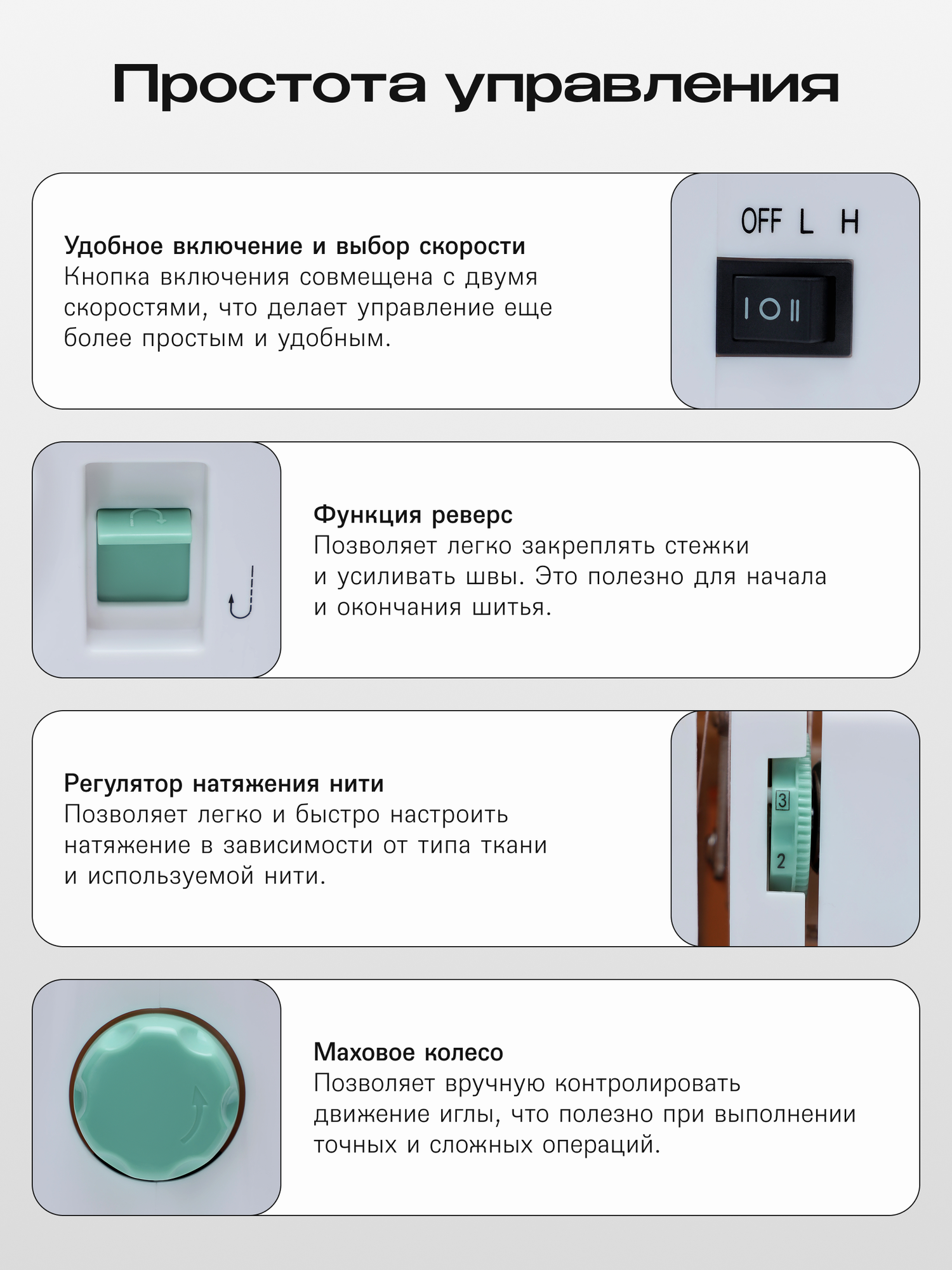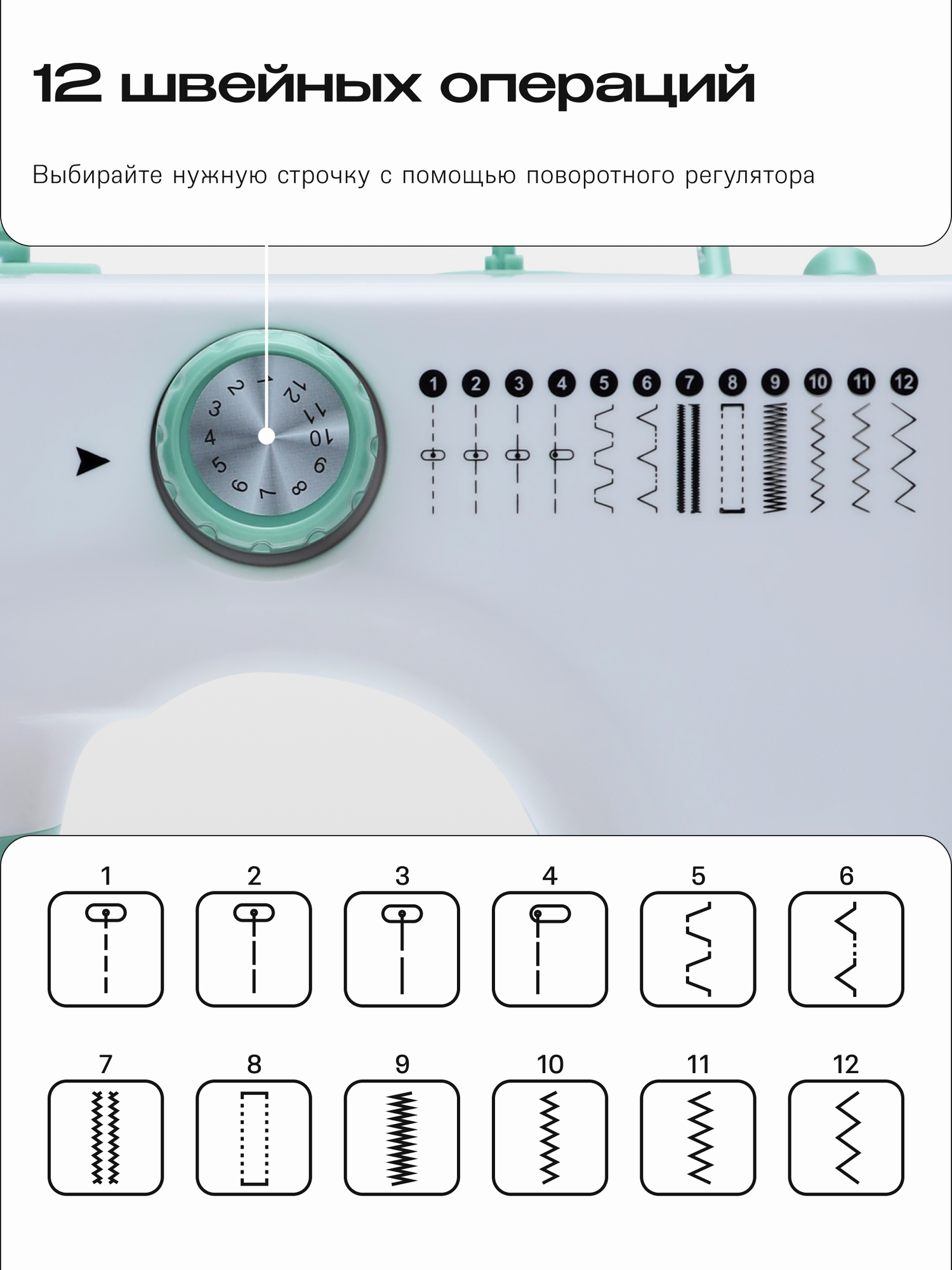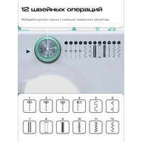 Швейная машинка, 12 типов стежков, 2 скорости, белая с зеленым: сравнение цен, характеристики, фото, актуальное наличие и цены.