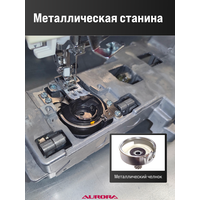 Конструкция Aurora 780 включает в себя отсек для аксессуаров, подсветку, рукавную платформу, стол для расширения рабочей поверхности и возможность шить двойной иглой.