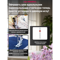 У машины дополнительная комплектация: ( тефлоновая, оверлочная лапки и двойная игла)