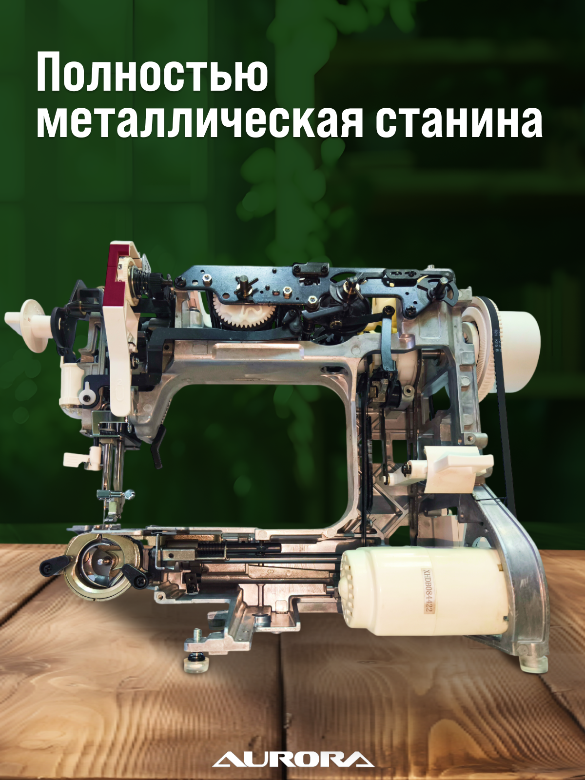 AURORA 830 оснащена металлическим вертикальным челноком, что обеспечивает плавную и бесшумную работу.