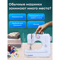 | Особенности конструкции | линейка на корпусе, нитевдеватель, отсек для аксессуаров, подсветка, рукавная платформа |