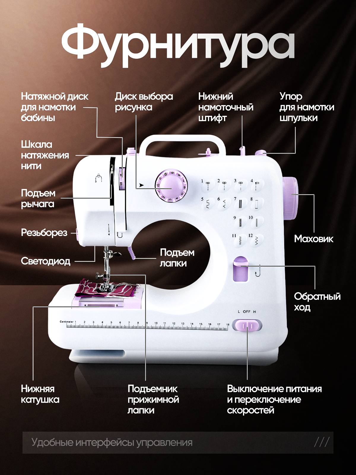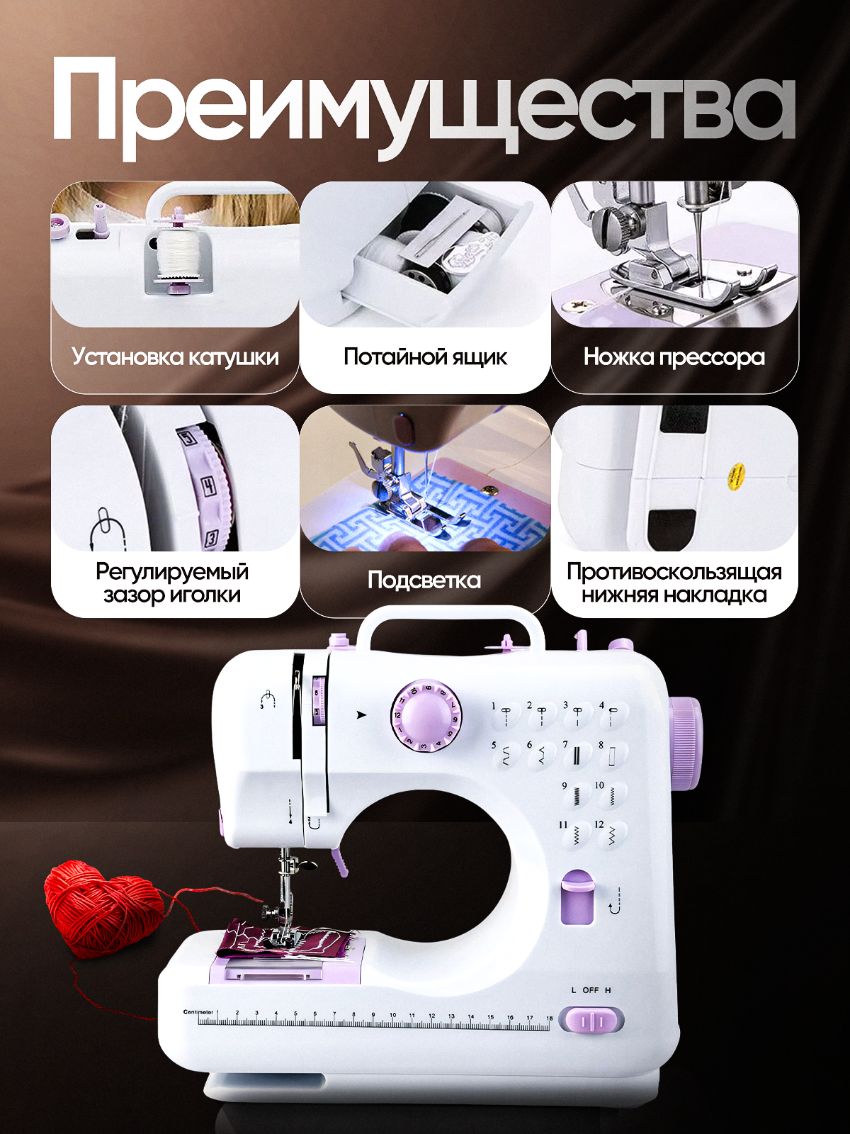 Электрическая швейная машинка мини с педалью - это функциональная и компактная модель, которая подойдет для пошива одежды, кухонного текстиля, постельного белья и штор дома.