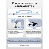 Швейная мини-машинка, 12 типов стежков, 2 скорости + педаль, белая с голубым: сравнение цен, характеристики, фото, актуальное наличие и цены.