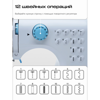 Купить Швейная мини-машинка, 12 типов стежков, 2 скорости + педаль, белая с голубым с доставкой по всей России.
