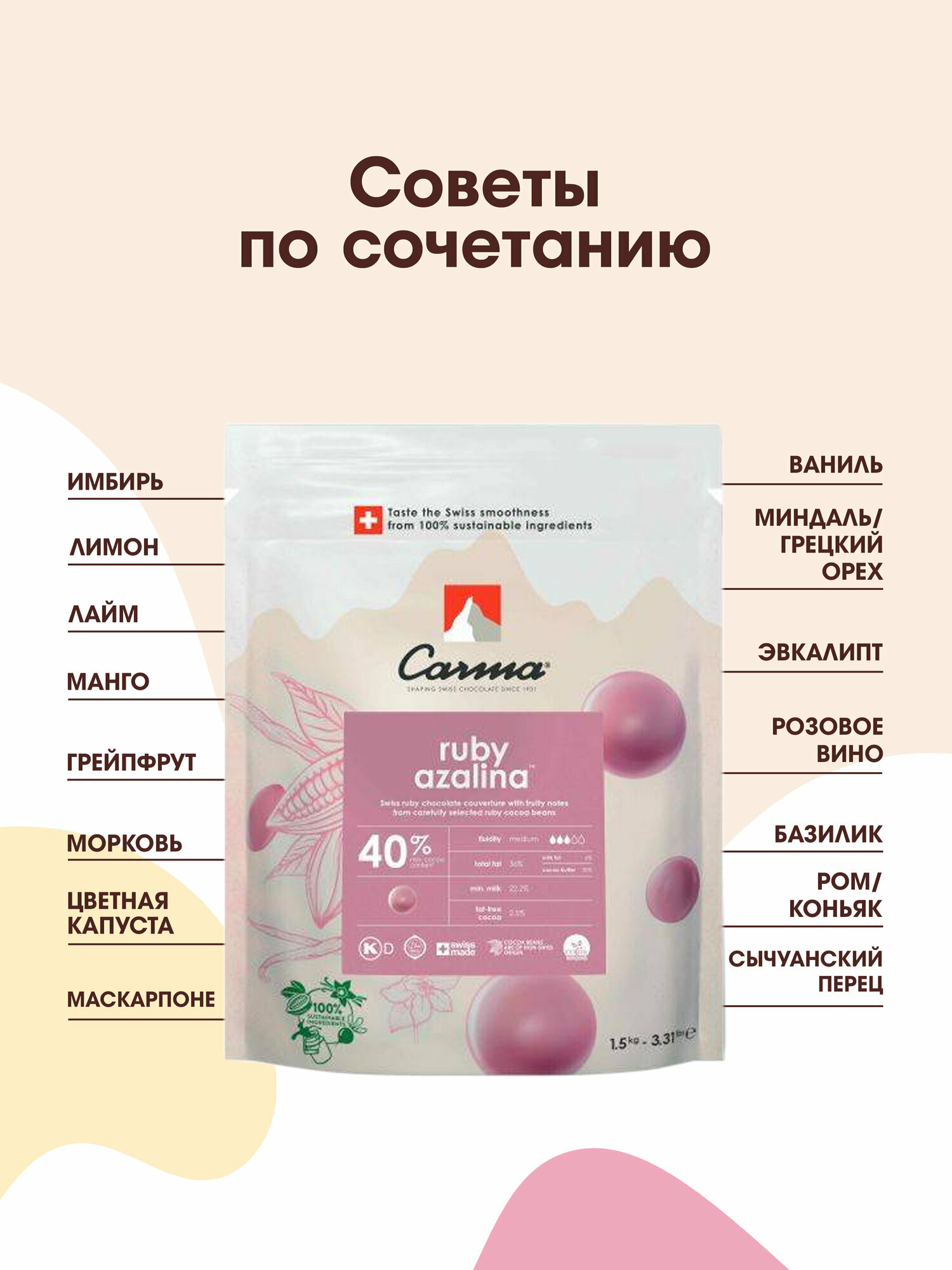 Швейцарский шоколад с ягодным вкусом Carma Ruby Azalina 40%, 1,5 кг: сравнение цен, характеристики, фото, актуальное наличие и цены.